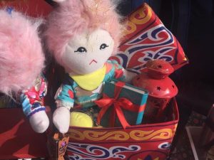 ويمكن أيضاً تصميم أو شراء صندوق مغطى بقماش الخيامية لإضافة أجواء رمضانية أكثر بالهدية مع إضافة المصحف الشريف مع دمية طمطم والتي مرتبطة بأجمل ذكريات الطفولة لدى الخطيبة أو الزوجة، مع إضافة فانوس ملون.
