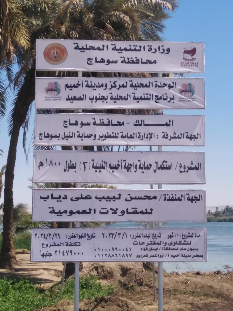 تفقد اللواء طارق الفقي محافظ سوهاج، اليوم، أعمال مشروع ربط كورنيش أخميم بكورنيش سوهاج الشرقي، ضمن مشروعات برنامج التنمية المحلية بصعيد مصر، وذلك للوقوف على نسب التنفيذ، ومعدلات الآداء، وإزالة أية معوقات، بحضور مسئولي الشركة المنفذة، ومسئولي حماية النيل، ورئيس مركز ومدينة أخميم.