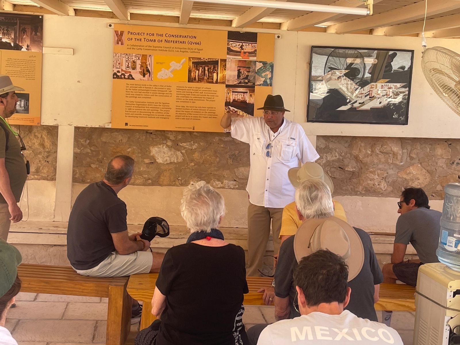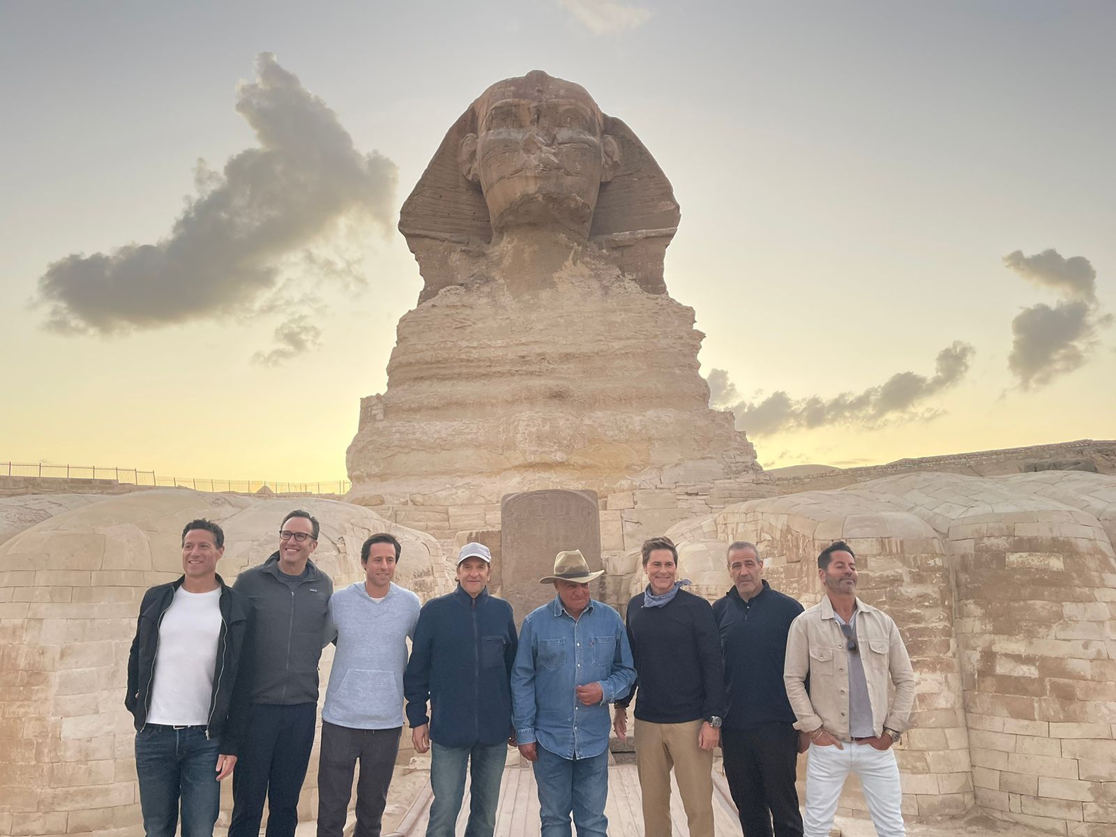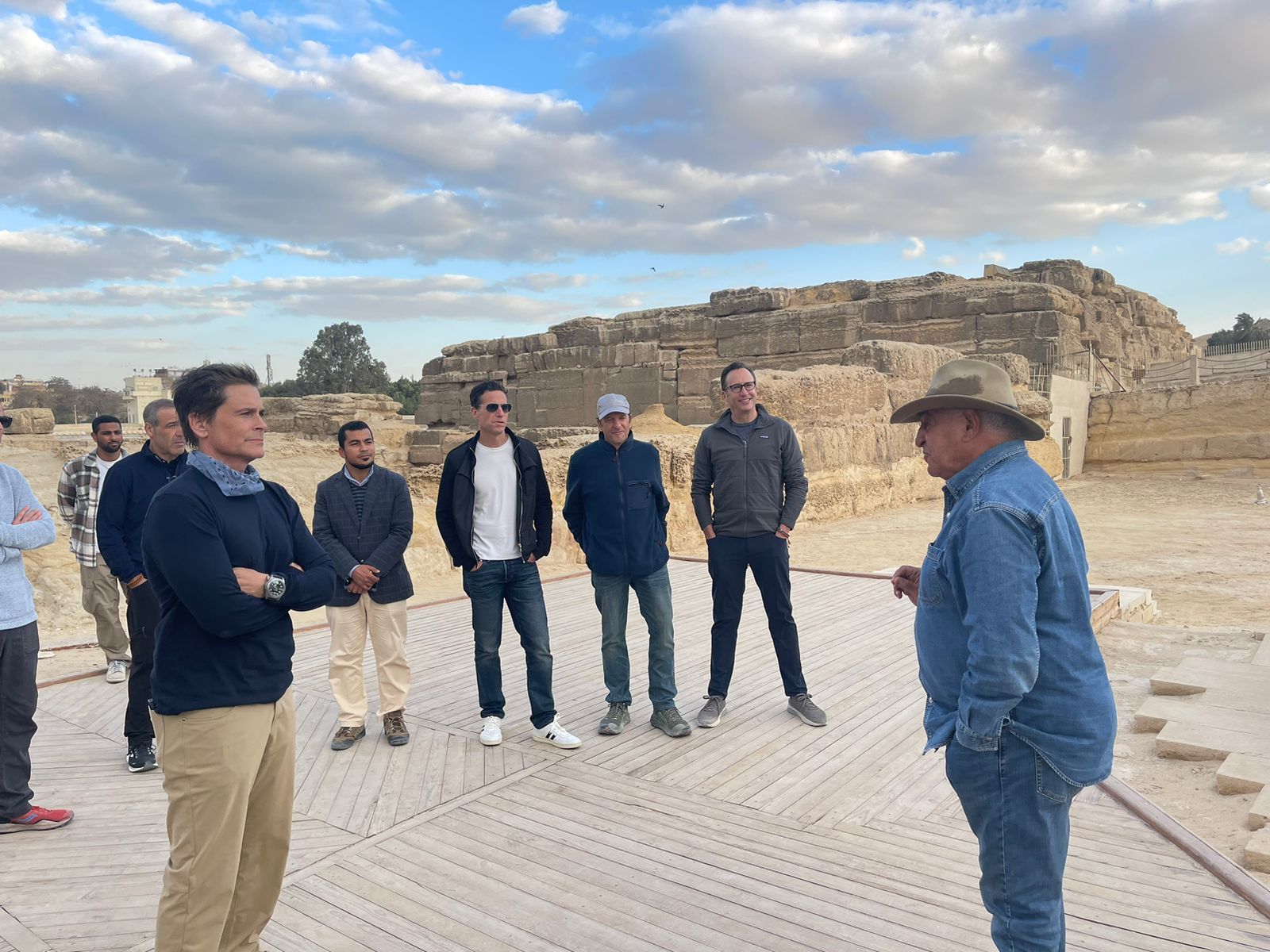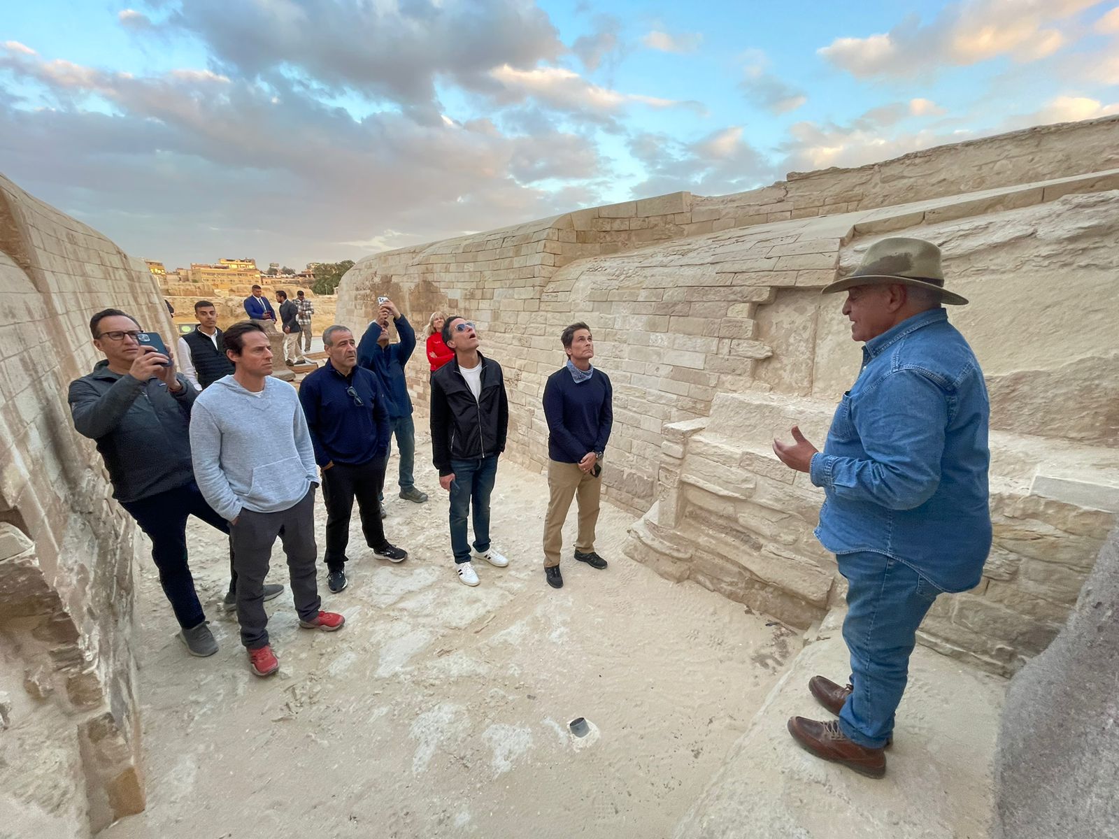 زاهي حواس يشرح أسرار أبو الهول للفنان العالمي روب لو والوفد المرافق له