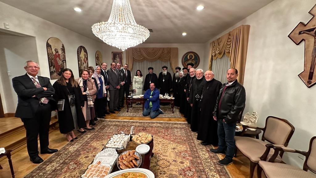 كما شارك في استقبال الوفد المصري الأنبا أبراهام الأسقف العام في لوس أنجلوس بالولايات المتحدة الأمريكية، وأسقف مساعد الخدمات الاجتماعية في الأبرشية ونائب رئيس لجنة العلاقات المسكونية في المجمع المقدس للكنيسة القبطية الأرثوذكسية، وكذلك الأنبا كيرلس، الأسقف العام للتعليم المسيحي لأبرشية الأقباط الأرثوذكس في لوس أنجلوس وجنوب كاليفورنيا وهاواي وحضور الآباء الكهنة وهو أول أسقف أمريكي المولد للكنيسة القبطية الأرثوذكسية قدمت السفيرة سها جندي التحية والتقدير لنيافة الأنبا سرابيون والآباء الكهنة، وطلبت منهم الصلاة لمصر، .