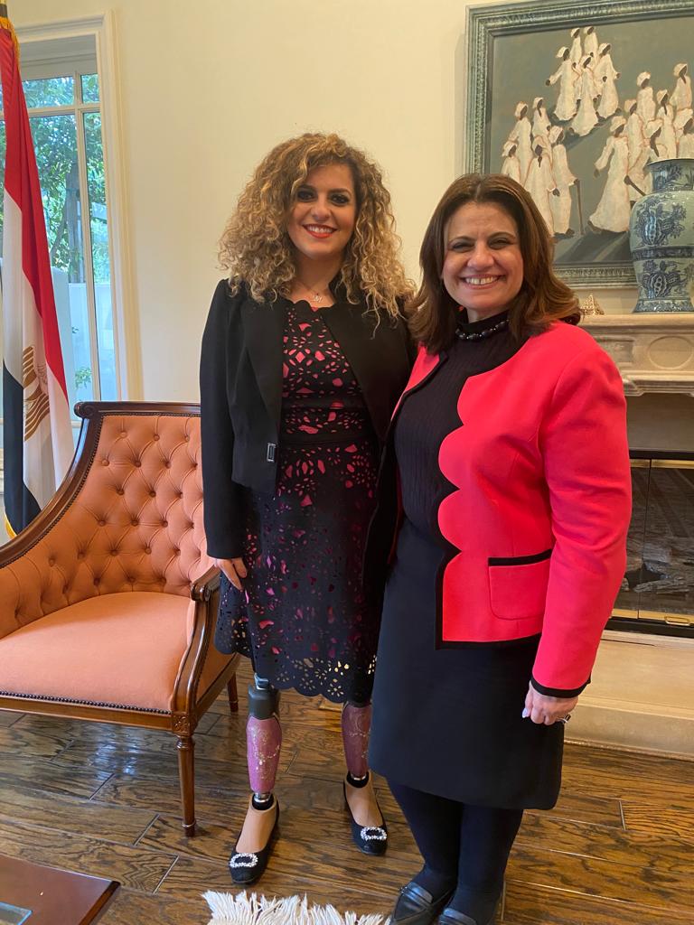 كما التقت السفيرة سها جندي الأستاذة مارينا نخلة، صاحبة الانجازات الفريدة في مجال أصحاب القدرات الخاصة والتي نجحت رغم إعاقتها في القدمين واليدين ان تحصل على درجتين للدكتوراه في علم النفس والتخصص في التعامل مع ذوي القدرات الخاصة وبمجال الأطراف الصناعية، حيث عرضت خبراتها في هذا المجال ورغبتها في نقل هذه الخبرات التي اكتسبتها فيما يتعلق بالأطراف الصناعية والإعاقات وتنفيذها في مصر، عن طريق التعاون مع منظمات المجتمع المدني بمصر والتي تعمل مع الأطراف الصناعية والإعاقات، لإعطاء دفعة إيجابية للجميع وخاصة لذوي الإعاقة.