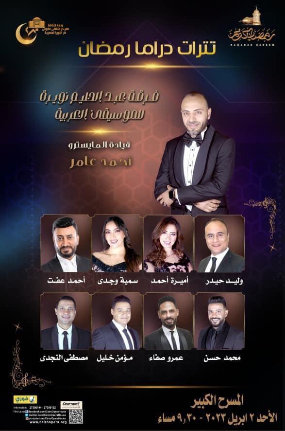 يقام حفلين فى التاسعة والنصف من مساء الأحد المقبل، الموافق 2 إبريل الجاري، ضمن الليالى الرمضانية المميزة التى تنظمها دار الأوبرا المصرية برئاسة الدكتور خالد داغر.