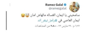 وتفاعل رواد السوشيال ميديا مع الحلقة، حيث دخل الجمهور في التعليقات من خلال الاستعانة بمشهد ضرب محمد رمضان لشقيق إيمان العاصي في مسلسل “جعفر العمدة”، وكأن رمضان سيعتدي بالضرب على رامز جلال، انتقامًا لإيمان العاصي.