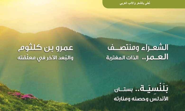 و في “باب”عصور” كتب الشاعر سامح محجوب عن الشاعر عمرو بن كلثومء تحت عنوان : ” عمرو بن كلثوم.. والبعد الآخر في معلقته “، في باب “نقد” كتب أحمد حسين حميدان عن: “الصُّبح.. مجاز الشعراء في البشرى والبهجة”، وفي باب “تأويلات” قرأ الدكتور سلطان الزغول قصيدة “قافية تنسلُّ من الغيم”، للشاعر آمدو علي، كما قرأ أ.د. جاسم محمد جاسم المعاناة في قصيدة “روح الأبوة” للشاعر جاسم الصحيح.