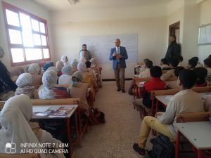 وتفقد وكيل الوزارة، حجرات الأنشطة والمكتبة، موجها بالتسجيل في المشروع الوطني للقراءة طلاب ومعلمين وتفعيل الفهرسة الإلكترونية، كما وجه بالاهتمام بطابور الصباح، والالتزام بتحية العلم والسلام الجمهورى بجميع المدارس، وتكثيف التوعية بالإجراءات التي يجب اتباعها في حالة حدوث زلازل أو كوارث من خلال الإذاعة المدرسية، وتدريب الطلاب والعاملين بالمنشآت التعليمية على خطة الإخلاء، حفاظاً على سلامة أبنائنا الطلاب، وتفعيل الرحلات المدرسية لجميع المراحل التعليمية لزيارة المشروعات القومية والأماكن السياحية والأثرية، وذلك لتنمية الوعي لدى الطلاب بما تنجزه الدولة المصرية وغرس قيم الولاء والانتماء للوطن.