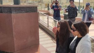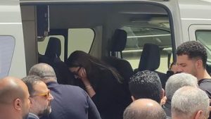 انهيار دينا الشربيني أثناء وصول جثمان والدها لأداء صلاة الجنازة عليه (صور)