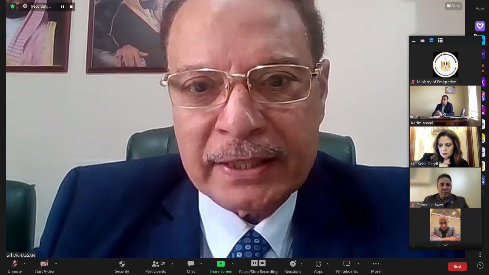 قدت السفيرة سها جندي، وزيرة الدولة للهجرة وشئون المصريين بالخارج، اجتماعا تشاوريا عبر الفيديو كونفرانس مع أعضاء المجلس التأسيسي الخاص بـ “شركة المصريين بالخارج للاستثمار”، وذلك بحضور الدكتور فخري الفقي، رئيس لجنة الخطة والموازنة بمجلس النواب وخبير صندوق النقد الدولي السابق، والسفير عمرو عباس، مساعد وزيرة الهجرة للجاليات، و وسيم زكي المستشار المالي لوزارة الهجرة، و نمير نجم، المستشار القانوني لوزارة الهجرة.
