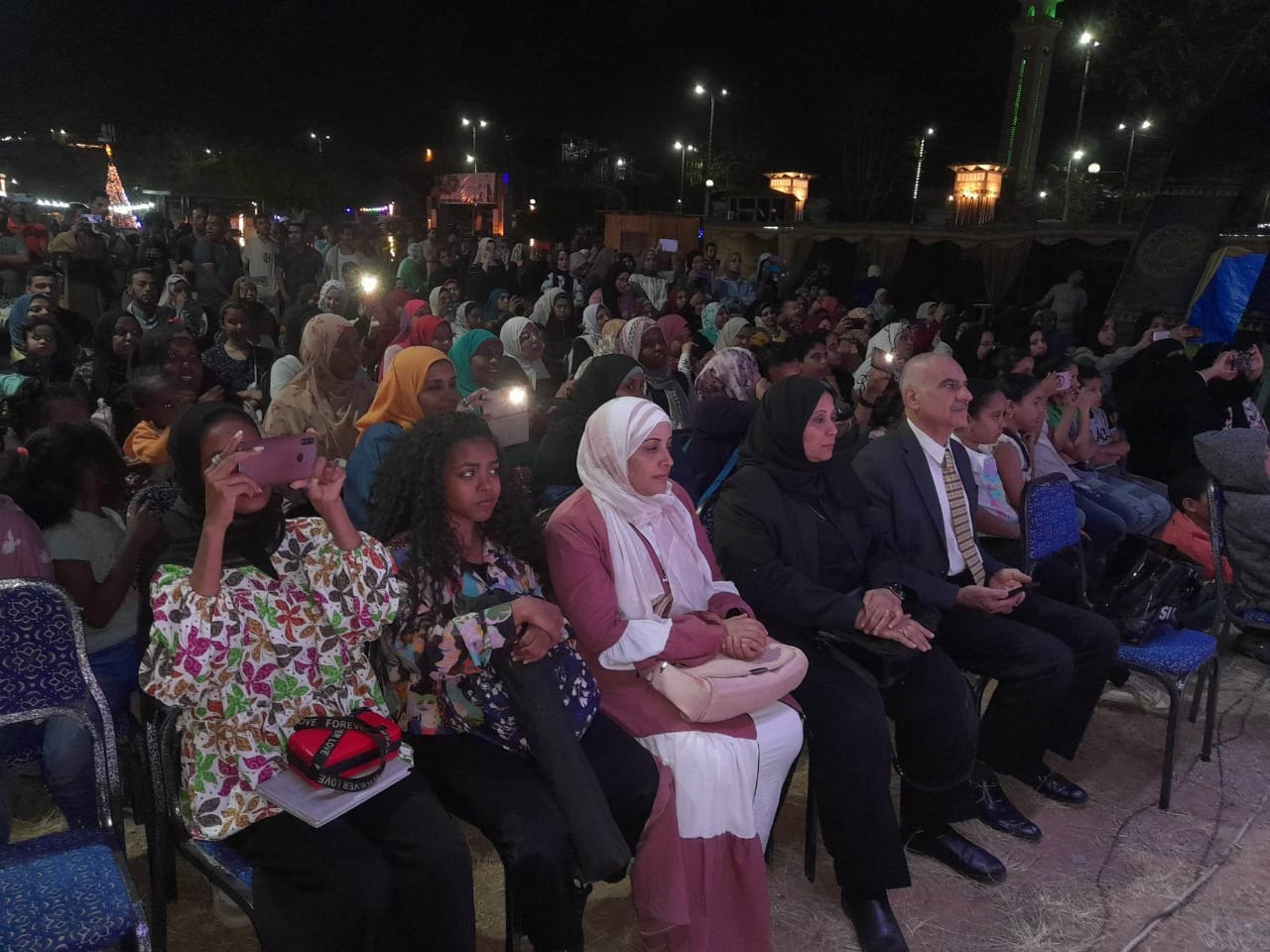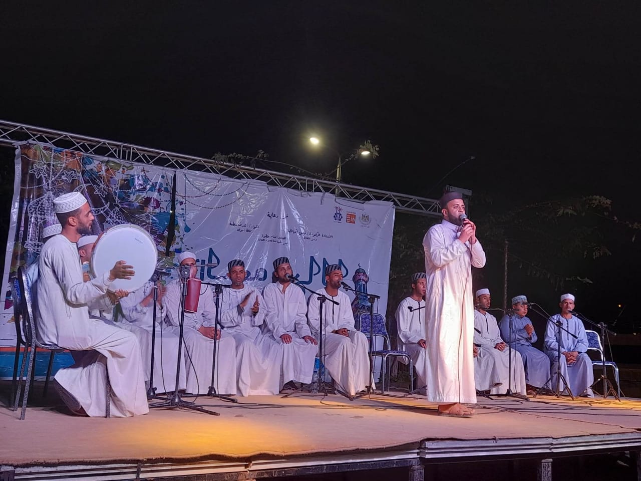كما تضمنت الفعاليات عرضا لفرقة السباعية للإنشاد الديني بقيادة الشيخ حسين بيومي قدمت مجموعة من الابتهالات والتواشيح منها “مليون صلاة الزين، يا أبا الزهراء رضينا، نحن في ساحة الحسين، قمر، إلى المدينة”، كما قدمت فرقة توشكى فقرات مستوحاة من البيئة النوبية منها “الصياد، وآه نوبة، الأراجيد، الغزل النوبي، ليلة الحناء، رقصات نوبية، رقصات سودانية”، بجانب فقرة فنية للفنان أحمد عودوني.