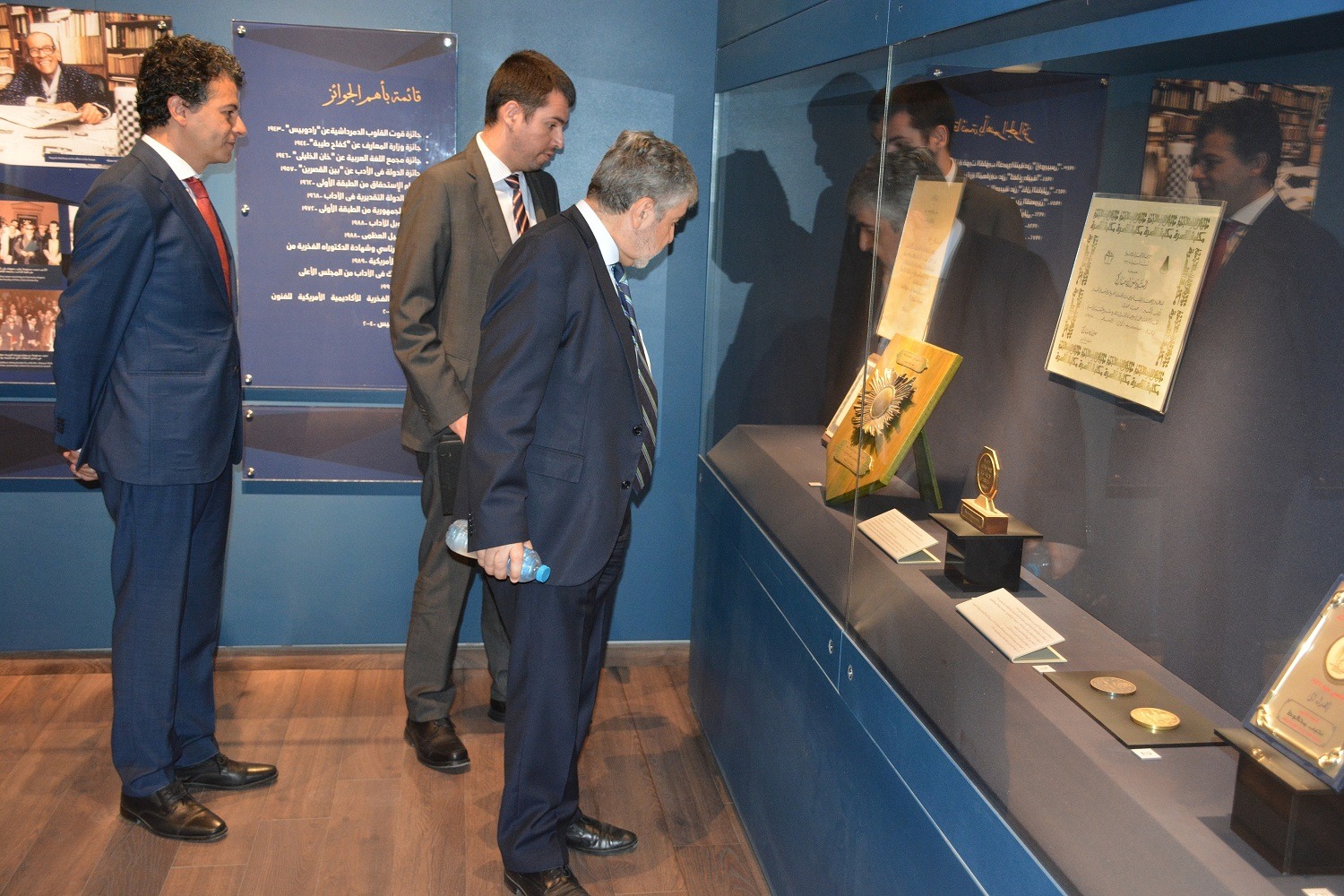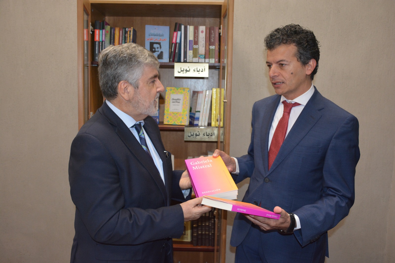 مضيفا ان ادب امريكا اللاتينية يحتل مكانه مرموقة فى الثقافة الاسبانية، ومن خلال مشاركة هذه الاعمال الناحجة يستطيع مستخدمى مكتبة ادباء نوبل تحقيق فهم افضل لهويتنا ورؤيتنا للعالم، ومن جانبة وجه د. هانى ابو الحسن الشكر لسفير تشيلى على هذه المبادرة والتى بدات عام 2021 باهداء مجموعه من اعمال ميسترال لمكتبة ادباء نوبل بالمتحف والتى تساهم فى اثراء المجتمع المحلى بالعديد من الافكار والثقافات المختلفة وتعزيز التعاون بين البلدين اعقب ذلك جولة للسفير والقنصل العام بالمتحف