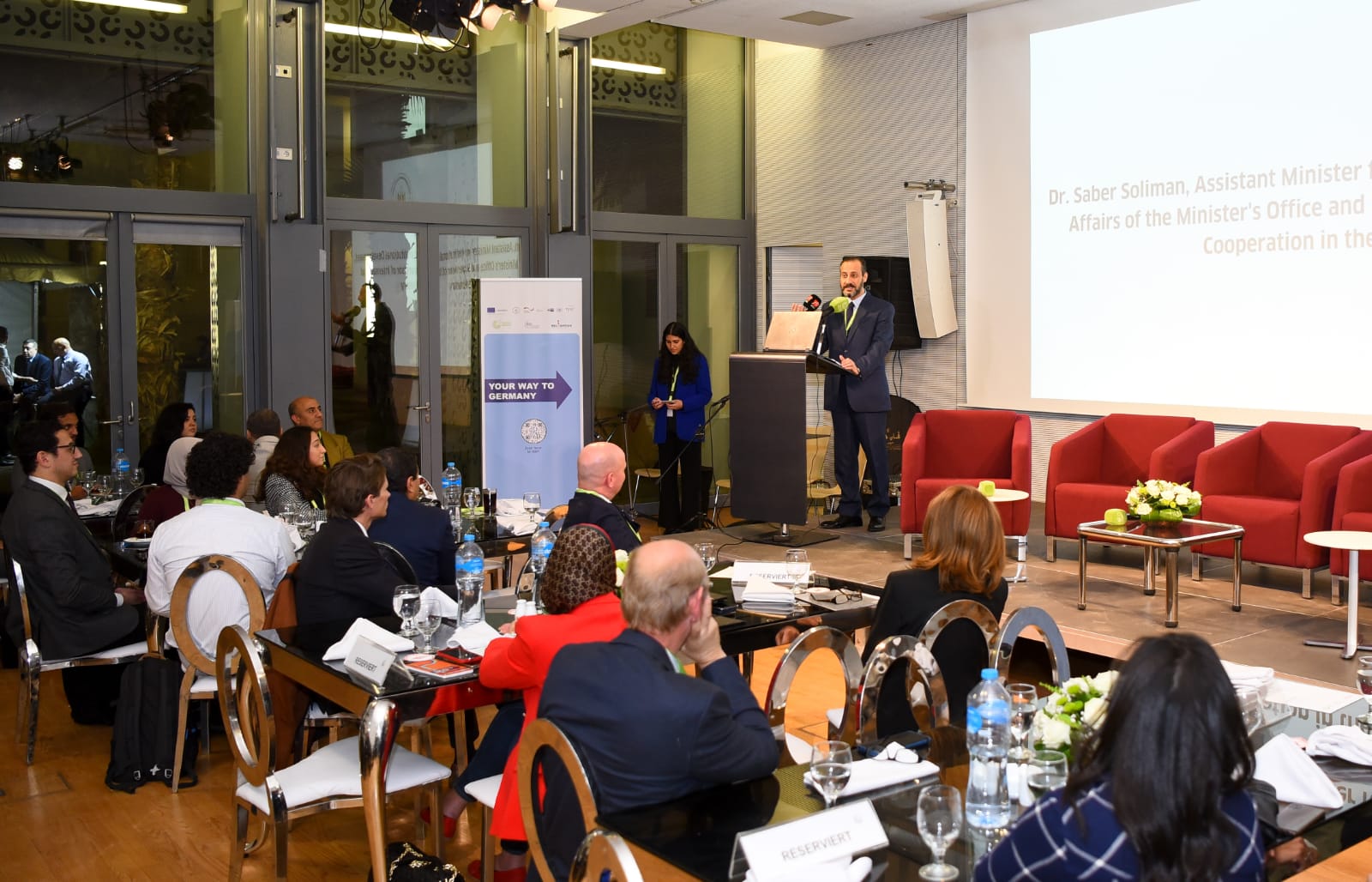 وفي كلمته التي ألقاها نيابة عن السفيرة سها جندي وزيرة الدولة وشئون المصريين بالخارج نقل د. صابر سليمان تحيات وزيرة الهجرة، مشيرا إلى تقديرها للتعاون المثمر مع الجانب الأوروبي والألماني خلال السنوات الماضية، وتطلعنا للمزيد من التعاون لتوفير فرص العمل للشباب ومواجهة الهجرة غير الشرعية.