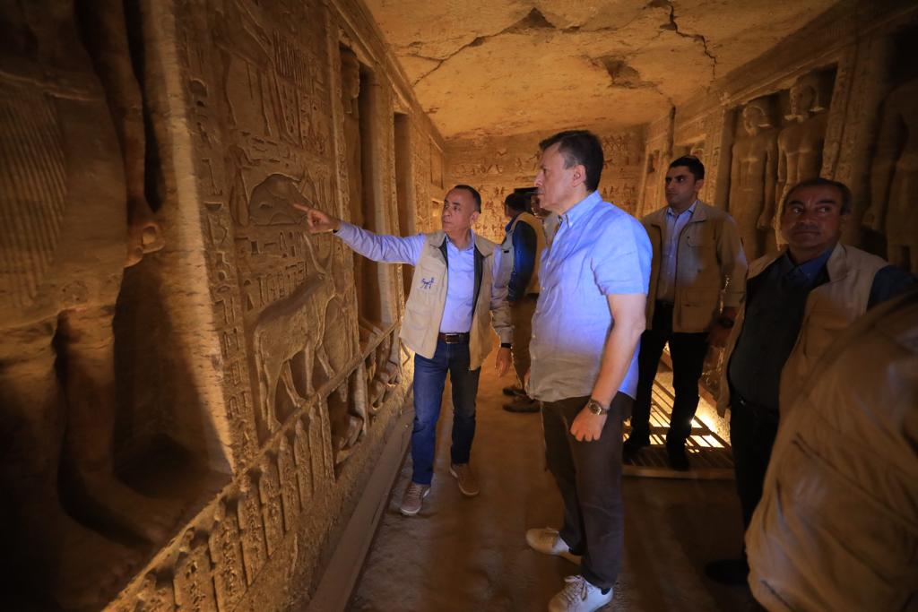 وخلال الجولة استمع أحمد عيسى إلى شرح مفصل من الدكتور مصطفى وزيري عن إنجازات البعثة على مدار سنوات عملها بالموقع منذ عام 2018 وحتى الآن.