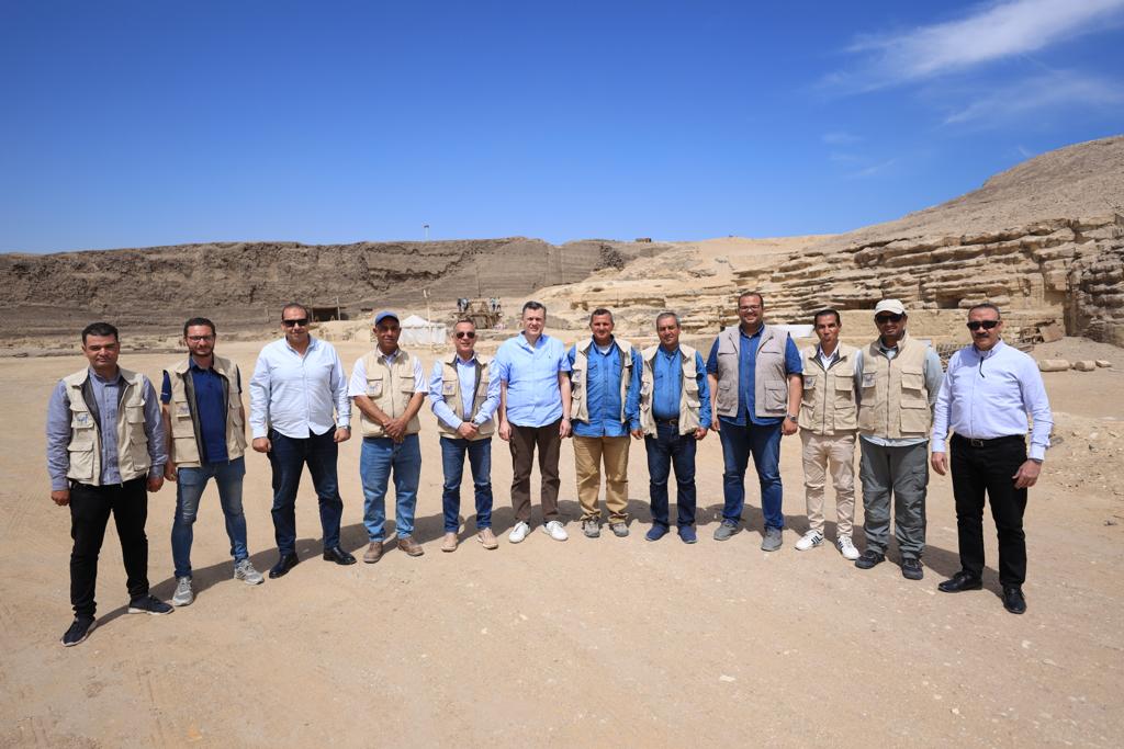 رافقه خلال الجولة كل من الدكتور مصطفى وزيري الأمين العام للمجلس الأعلى للآثار ورئيس البعثة الأثرية المصرية العاملة بالموقع، وأحمد عبيد مساعد الوزير لشئون قطاع مكتب الوزير، وصبري فرج مدير عام منطقة آثار سقارة ومحمد يوسف مدير آثار سقارة وعدد من مرممي المنطقة والعاملين بها.