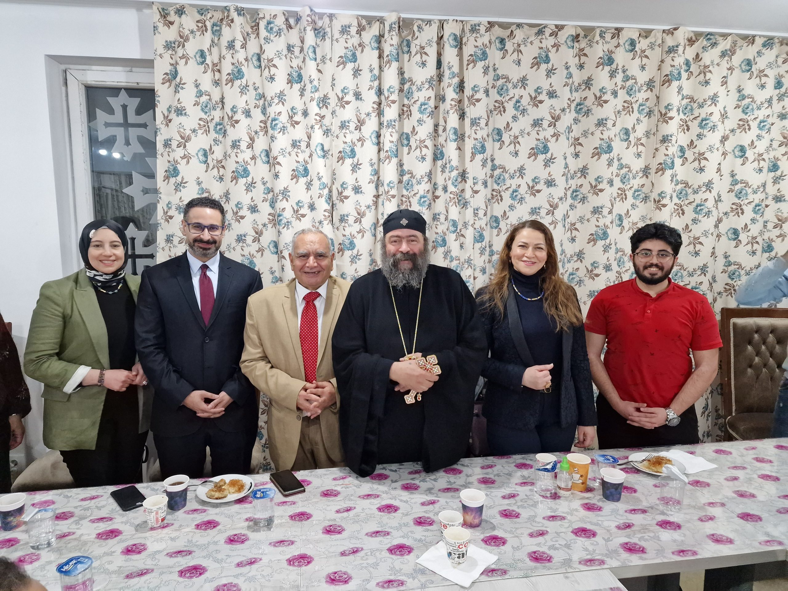 فى اجواء تسودها البهجة والسعادة تجمع المصريين برومانيا للاحتفال بعيد القيامة المجيد والافطار سويا ، فقد اقام ابونا د. مينا تكلا راعى الكنيسة المصرية القبطية الارثوذكسيه مارمينا برومانيا حفل افطار ( للمرة الثانية هذا العام )، حيث اقيم الاحتفال مأدبة الوحدة الوطنية بمقر الكنيسة ببوخارست فى ذاك اليوم العظيم وهو يوم الاحتفال بعيد القيامة المجيد.. يا لها من مناسبتين سعيدتين فى ان واحد ها هو التسامح الدينى وروح المحبة تتجلى فى حرارة استقبال ابونا د.مينا تكلا راعى الكنيسة بابتسامته المعهودة وشباب الكنيسة لاخوانهم من المدعويين المسلمين المصريين والعرب يستقبلونهم من على مدخل باب الكنيسة مردين السلام عليكم ورمضان كريم وكان على راس المدعويين سعادة المستشارة مروة شعير القائم باعمال السفير بسفارة جمهورية مصر العربية برومانيا والعقيد طيار اركان حرب محمود وهبى ملحق الدفاع المصرى برومانيا و المستشار د. نادر شبل قنصل السفارة المصرية وحرمة واعضاء السفارة.