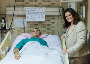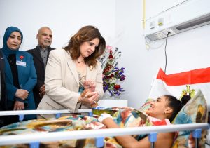 وزيرة الهجرة تزور الطالبين المصابين من المصريين العائدين من السوادن