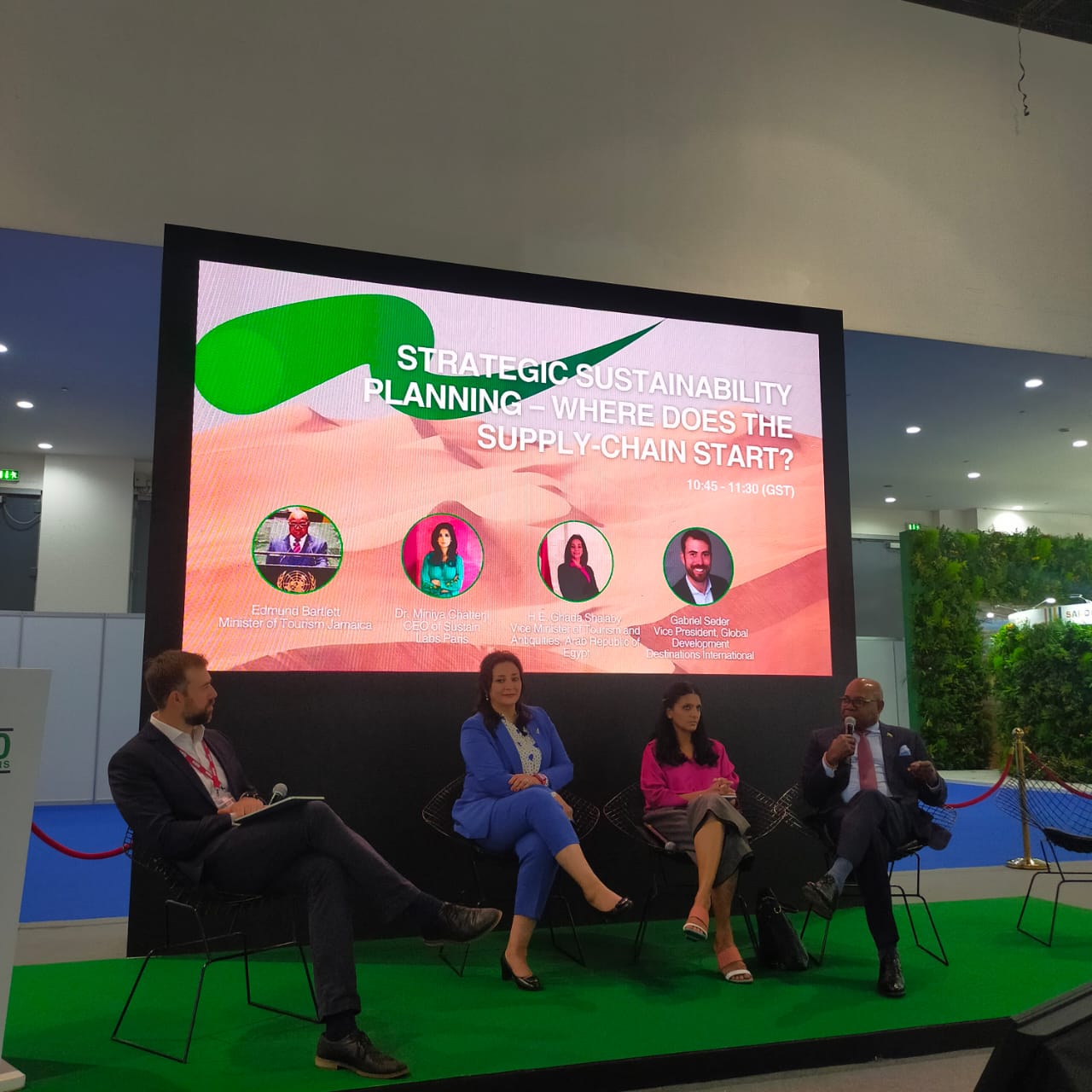 وقد شاركت غادة شلبي نائب وزير السياحة والآثار لشئون السياحة في الجلسة الحوارية التي أُقيمت على هامش الملتقى تحت عنوان ” Sustainability Hub ” بحضور السيد إدموند بارتليت وزير السياحة في دولة جامايكا، والدكتورة مينيا شاتيرجي المدير التنفيذي لمختبرات الاستدامة، والسيد جابريل سدر نائب الرئيس للتنمية العالمية- الوجهات الدولية.