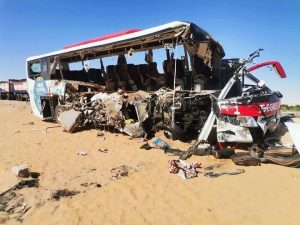 النيابة العامة تحقق في حادث تصادم حافلة بسيارة نقل بالوادي الجديد .. صور