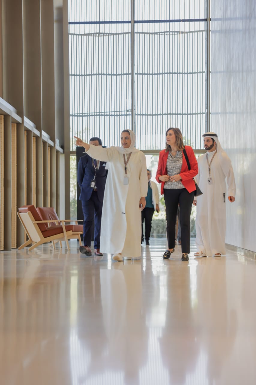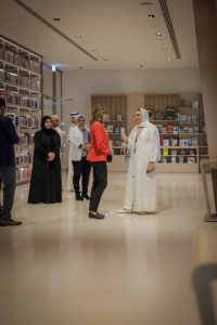 واطلعت كذلك على قاعة طباعة وتغليف الكتب والتي تتيح طباعة وتغليف الكتب خلال دقائق قليلة، وتمنح هذه التكنولوجيا للمستخدمين فرصة “النشر الذاتي” لأعمالهم، بالإضافة إلى طباعة الكتب الرقمية المتوافرة في المكتبة حسب الطلب، كما زارت ديوان السيدات وهو مساحة مُخصصة للسيدات تمنحهم الخصوصية للاستمتاع بالقراءة والمطالعة وعقد الاجتماعات والندوات، ومخبر الجزري وهو عبارة عن مخبر تصنيع رقمي مصمم للمشاريع المبتكرة يحتوي على تقنيات متطورة في الطباعة وآلات مثل الطابعات ثلاثية الأبعاد، وقاطع الليزر، إلى جانب آلة التحكم الرقمي الصغيرة، بالإضافة إلى معرض الخوارزمي.
