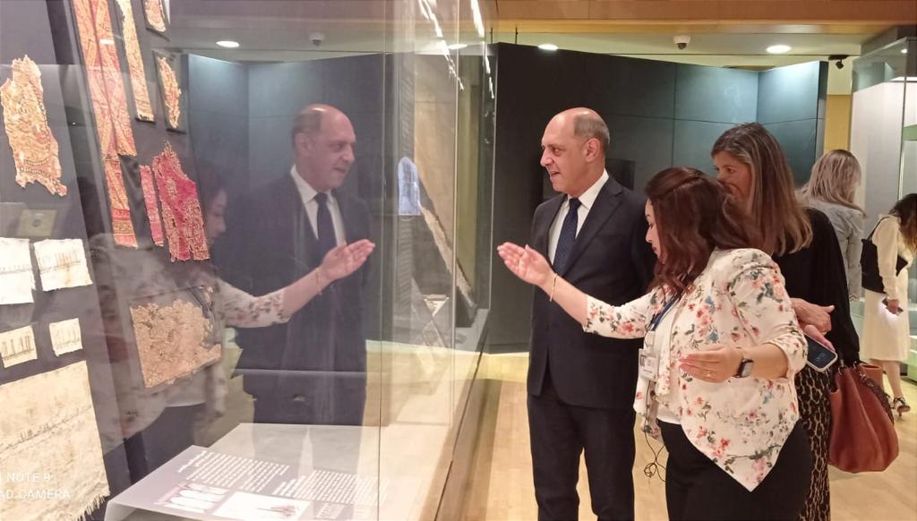 واصطحبت الدكتورة ماريان عادل أمينة المتحف، الوزير والوفد المرافق له، في جولة داخل قاعات المتحف المختلفة تضمنت قاعة العرض المركزية وقاعة النسيج المصري وقاعة المومياوات الملكية، حيث قدمت لهم شرح عن المقتنيات الأثرية الفريدة للمتحف.