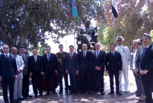 تم خلال الاحتفالية وضع الحضور إكليل من الزهور على تمثال الزعيم القومي لأذربيجان حيدر علييف، وعزف النشيد الوطنى لمصر وأذربيجان.