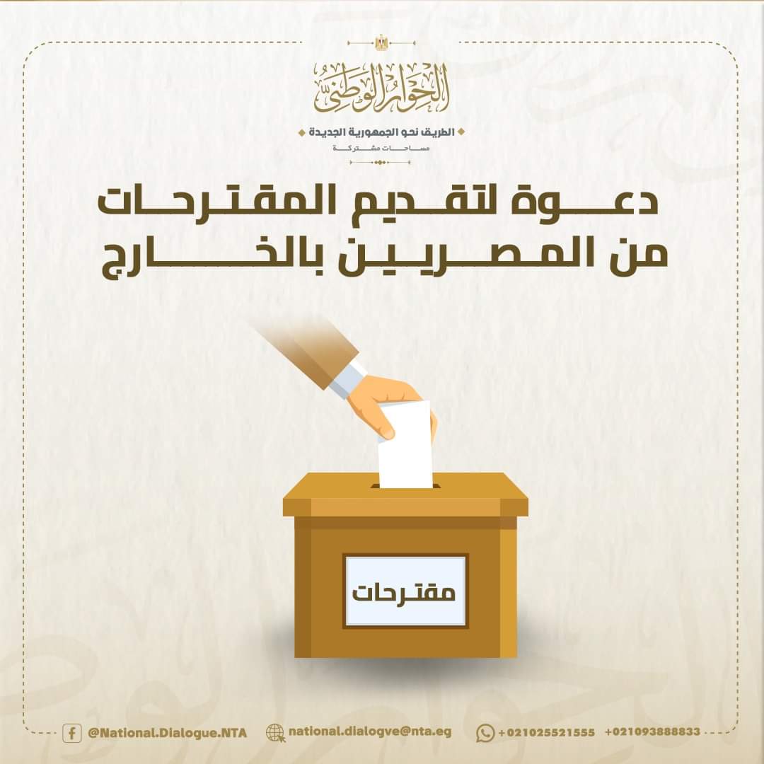 إدارة الحوار الوطني تستقبل المقترحات من خلال الموقع الإلكتروني:https://egyouth.com/ar/register/