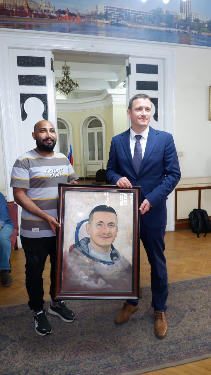 كما قام الفنان احمد جمال بعمل بورترية لرائد الفضاء الروسي سيرجي كود-سفيرتشكوف بمناسبة زيارته الاولي لمصر وقدم مراد جاتين مدير المراكز الثقافية الروسية في مصر الشكر للفنانين المصريين للمشاركة الفنية والأنسانية مع البيت الروسى بالقاهرة للاحتفال بذكرى عيد النصر كما قدم الشكر لجمعية الخريجين لتعاونها فى تنظيم الورشة ومن جانبه أشار شريف جاد رئيس الجمعية المصرية لخريجى الجامعات الروسية والسوفيتية الى أن الجمعية تحرص على المشاركة فى أحتفالات عيد النصر سنوياً وأكد جاد حرص الفنانين المصريين على المشاركة من خلال ورشة الرسم الحر كما أن مبادراتهم الشخصية برسم لوحة للسفير وأخرى لرائد الفضاء سيرجي كود-سفيرتشكوف أسعدت الأصدقاء الروس وقدم السفير الروسى ورائد الفضاء الشكر للفنانين المصريين