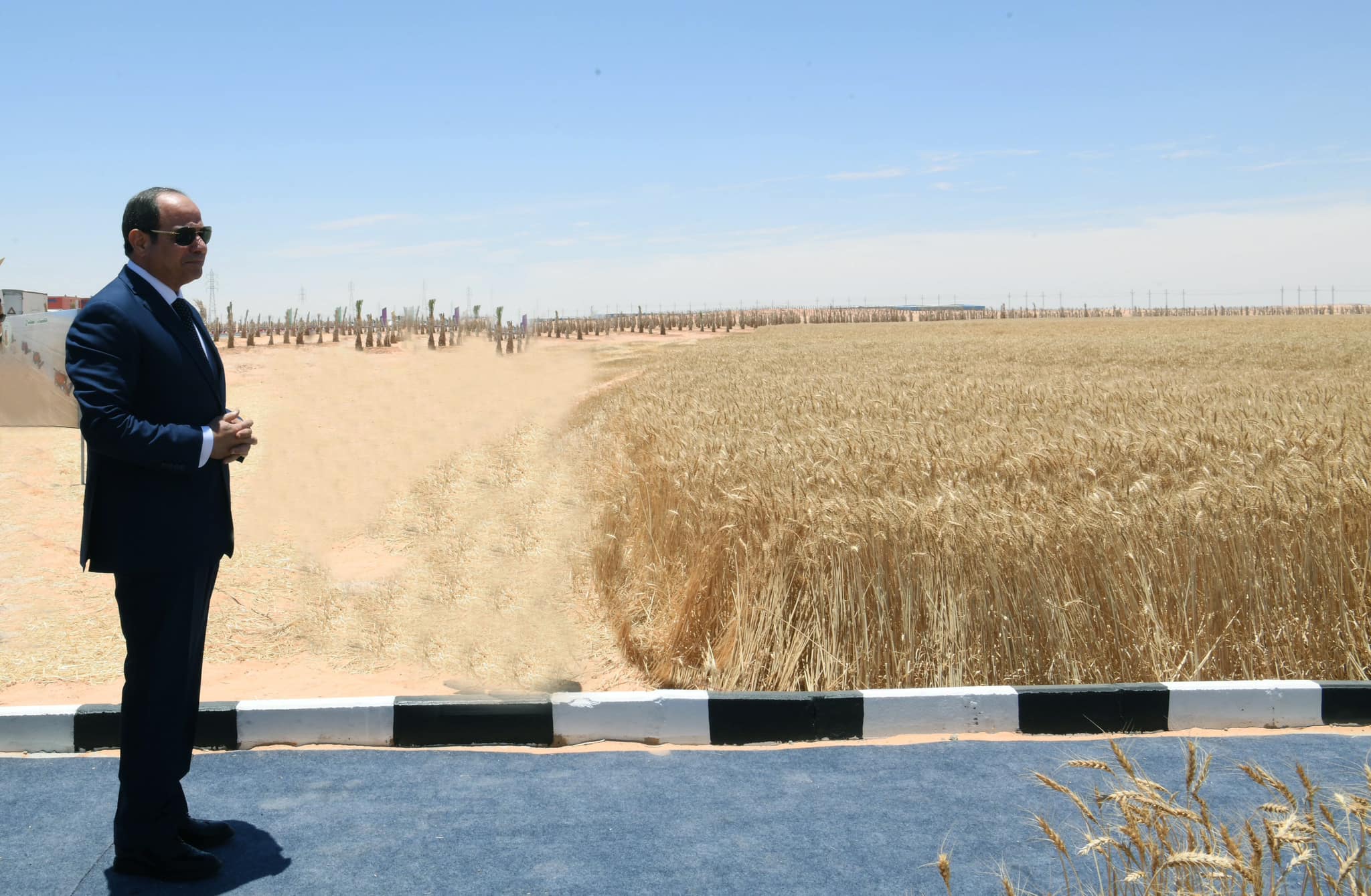 شهد الرئيس عبدالفتاح السيسي، اليوم الأحد، افتتاح موسم حصاد القمح وعدد من المحاصيل بالعوينات فى أضخم مشروع لإنتاج القمح، إذ تشهد مصر جهودا كبيرة تقوم بها لتوسيع حجم الرقعة الزراعية خاصة فيما يتعلق بالسلع الاستراتيجية كالقمح، فضلا عن افتتاح مصنع إنتاج البطاطس وثلاجات تقاوي البطاطس.
