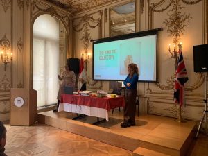 وجاءت الورشة في إطار تنظيم المكتب الثقافي المصري بلندن معرض “الملك توت عنخ آمون”، وذلك بمشاركة مجموعة من الفنانين المصريين، يتقدمهم الفنانتين هانيا الغمري ورانيا العجمي، وتم تقديم العديد من الأعمال الفنية المميزة والتي تعبر عن الحضارة والتراث والعادات المصرية.