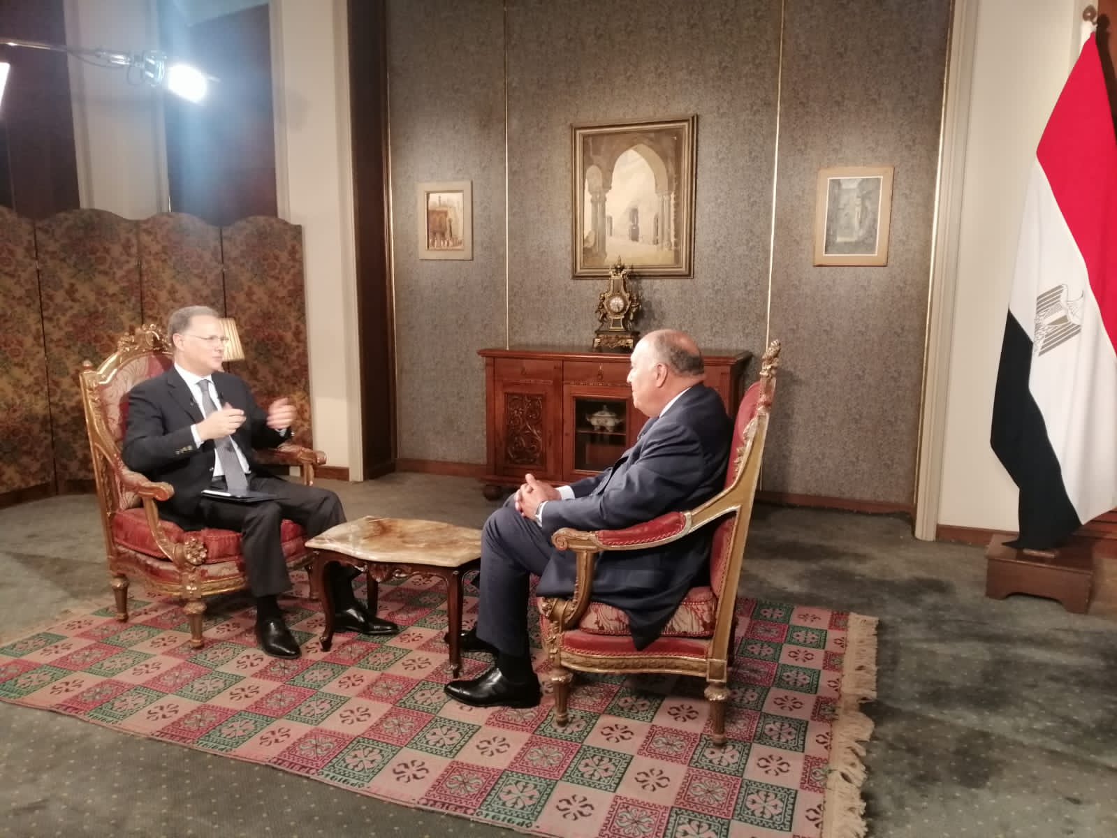 ويتحدث أيضًا، سامح شكري عن جهود مصر في وقف النزاع الفلسطيني الاسرائيلي، وكيف تتعامل الدولة مع القضايا العربية والاقليمية المحيطة بها.