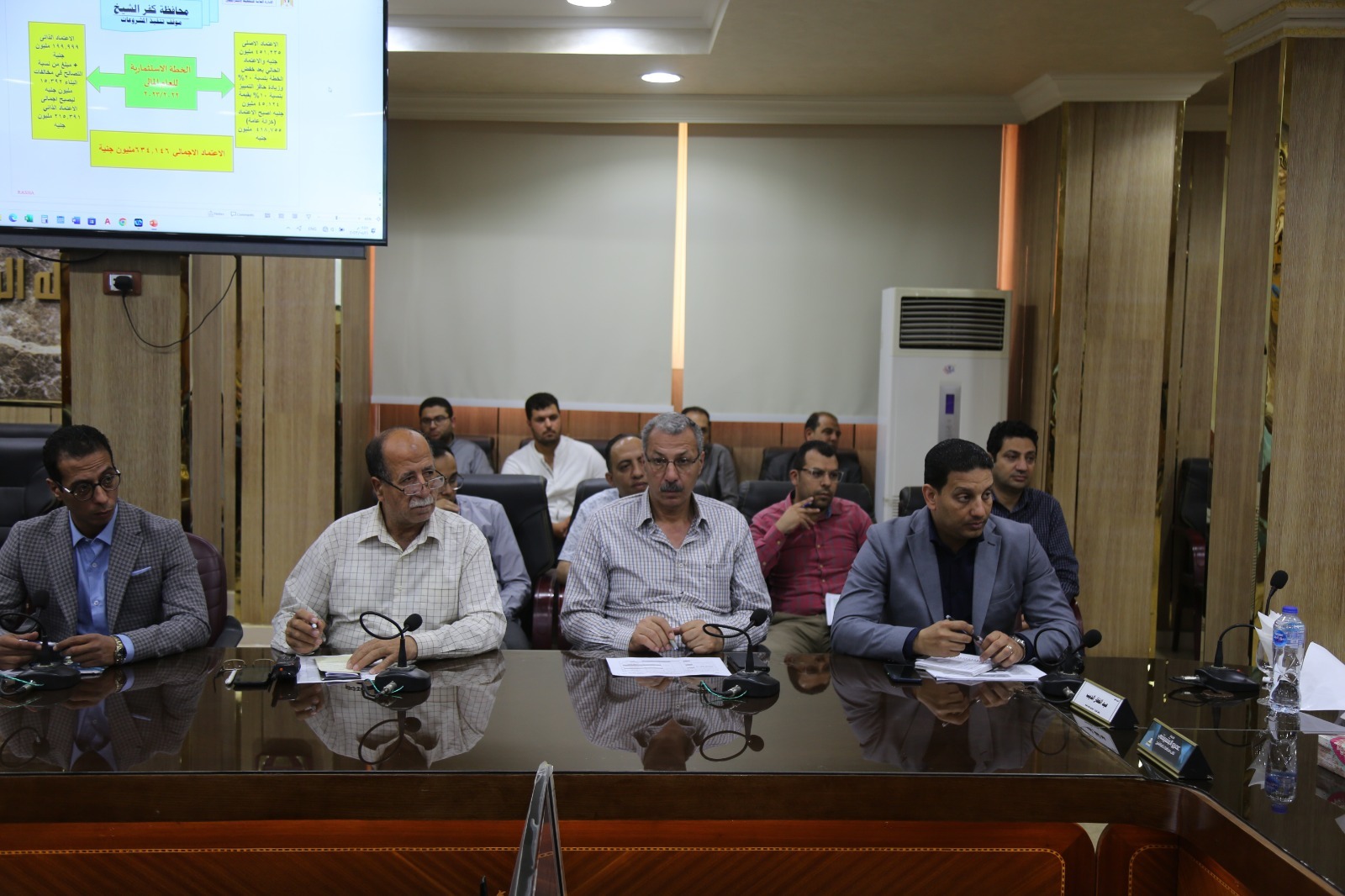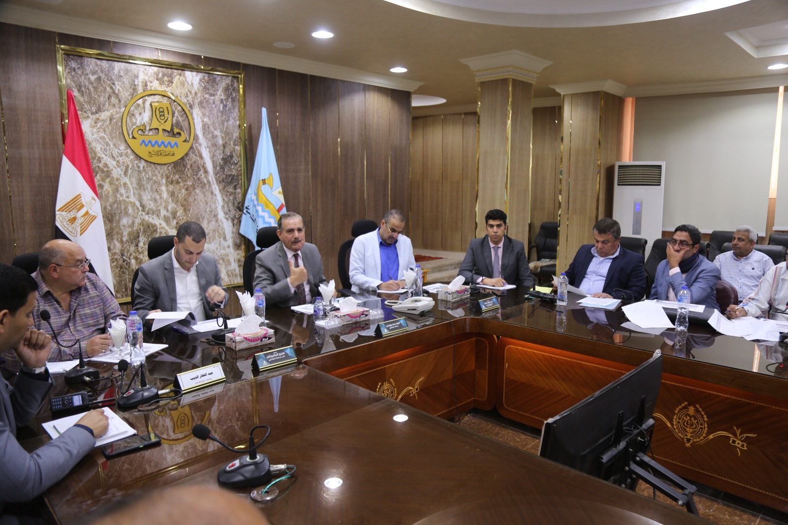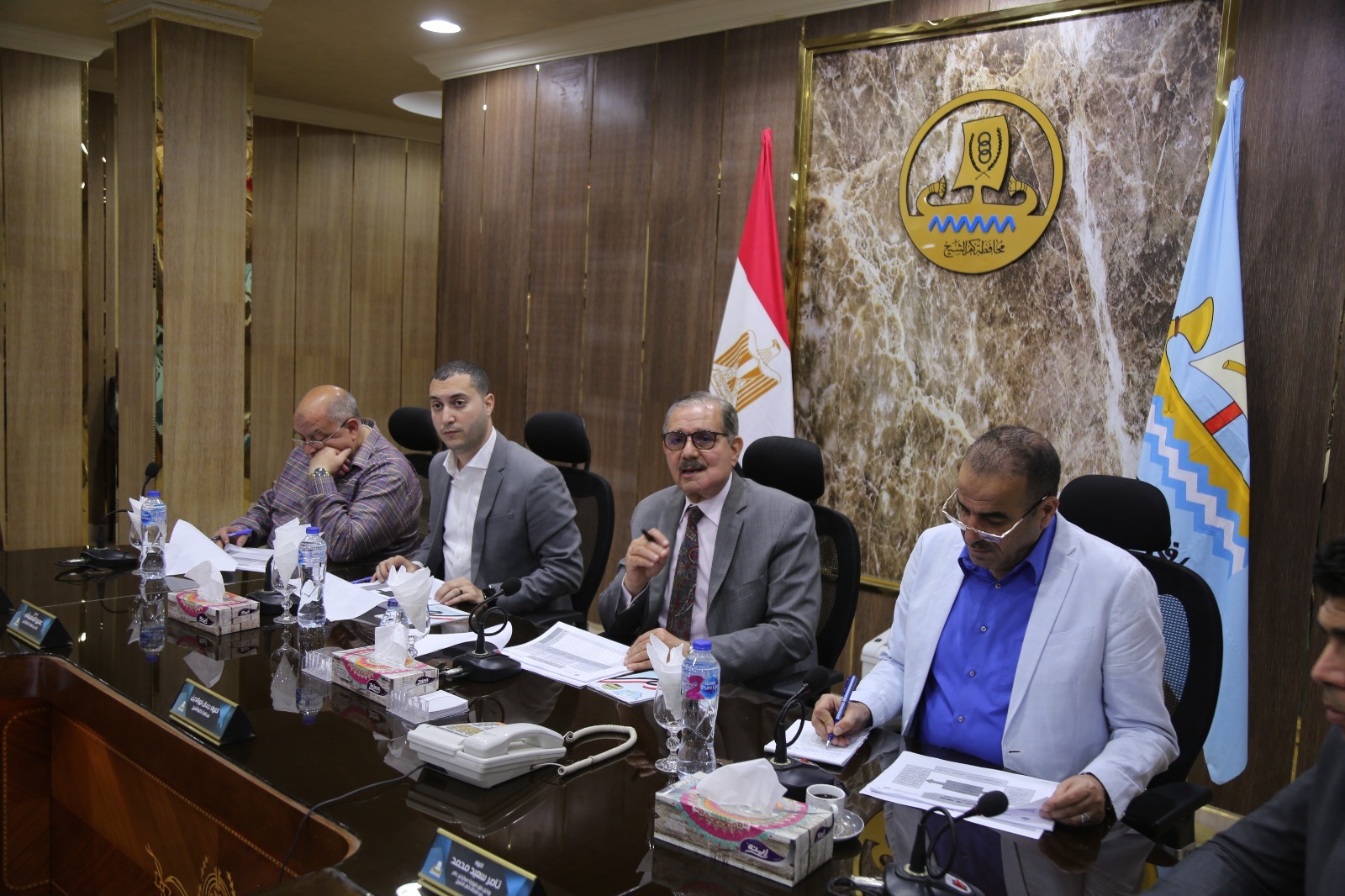 عقد اللواء جمال نور الدين، محافظ كفر الشيخ، اليوم الثلاثاء، اجتماعًا موسعًا لمناقشة الموقف التنفيذى الحالي للمشروعات الجارى تنفيذها بالمحافظة بالخطة الاستثمارية، وذلك بحضور عمرو البشبيشى، نائب محافظ كفر الشيخ، واللواء تامر سعيد، السكرتير العام للمحافظة، واللواء عبد الغفار الديب، السكرتير المساعد، وخالد المنياوي، مسئول الخطة الاستثمارية بالمحافظة، ورؤساء المراكز والمدن، ووكلاء الوزرات، وقيادات جميع القطاعات بالمحافظة.
