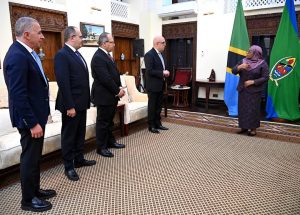 ويضم السفير المصرى بتنزانيا شريف عبدالحميد إسماعيل، ومسئولى التحالف المصرى المنفذ للسد التنزانى، المهندس أحمد العصار، رئيس مجلس إدارة شركة المقاولون العرب، والمهندس أحمد السويدى، رئيس مجلس إدارة شركة السويدي إلكتريك، وبحضور مسئولى الحكومة التنزانية.