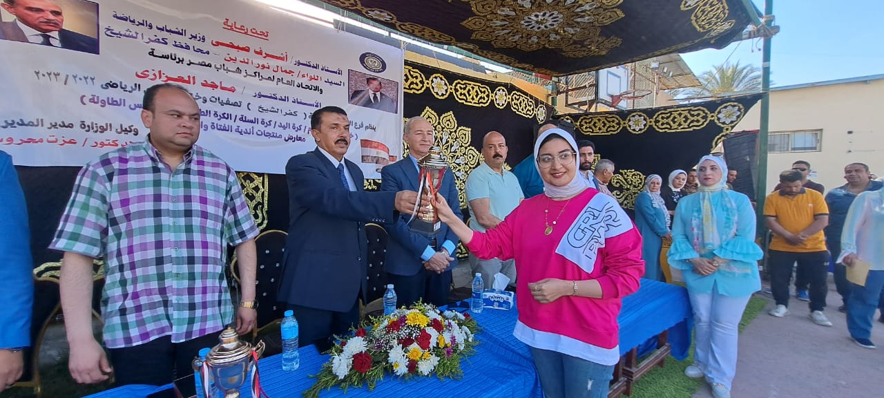 وفاز مركز شباب إدريجة في لعبة كرة اليد ممثلا لإدارة شباب كفر الشيخ، بكأس الاتحاد العام لمراكز شباب مصر، وفي بطولة السلة فاز مركز شباب الصافية بالمركز الأول وكأس الاتحاد والمركز الثاني أريمون، كما جاء ترتيب الفائزين في لعبة تنس الطاولة كالتالي” اللاعب عبد الرحمن منصور مركز أول من أبو قطفة، والثاني رامز ابراهيم من أبو قطفة وصلاح عبد الجليل من مركز شباب الصافية، وفي خماسي كرة القدم فاز فريق الربع من إدارة شباب بلطيم، بكأس الاتحاد العام وجاء فريق مركز شباب إصلاح شالما في المركز الثاني، فيما جاء مركز شباب بيلا في المركز الثالث، وأسفر تحكيم معارض منتجات أندية الفتاة والمرأة عن فوز مركز التنمية الشبابية بدسوق بالمركز الأول.