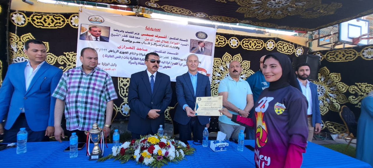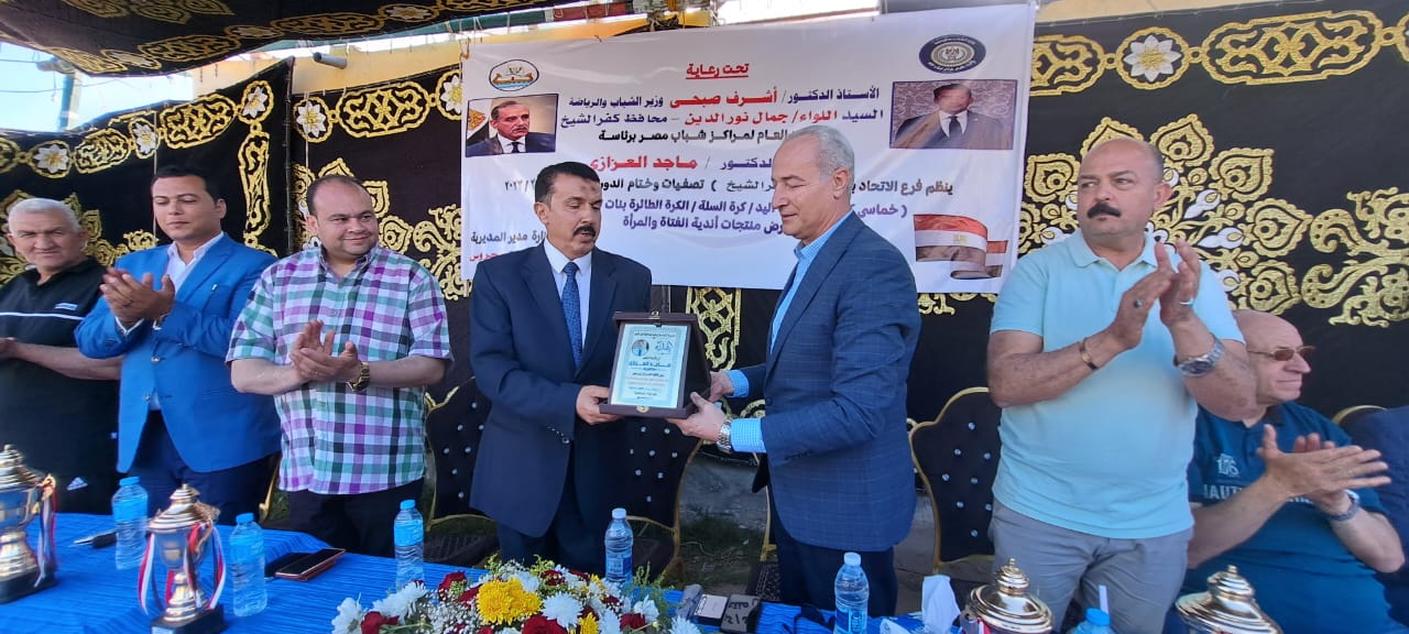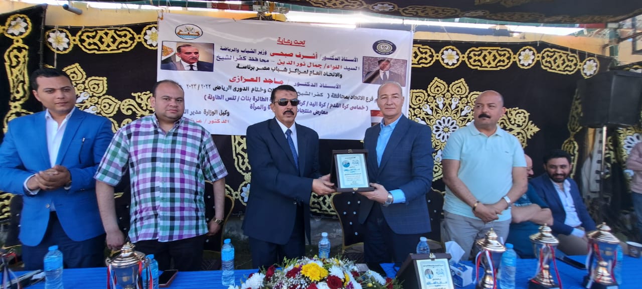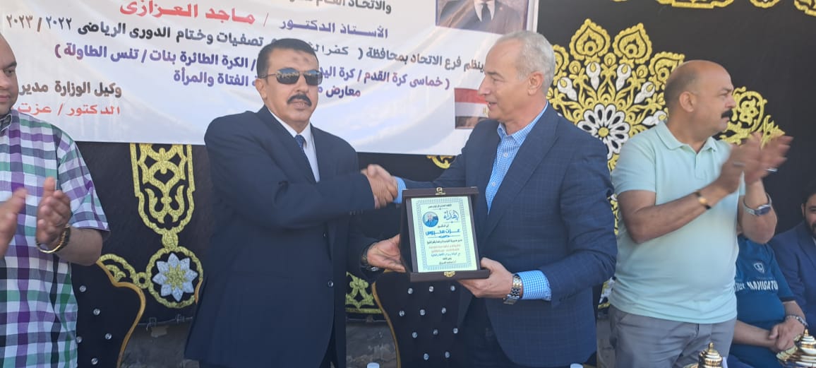 كما أهدى “محروس” درع مديرية الشباب والرياضة إلى رئيس الاتحاد العام لمراكز شباب مصر قبيل إعلان نتائج الفرق الفائزة في ختام الدوري، الذي اختتم برعاية الدكتور أشرف صبحي وزير الشباب والرياضة واللواء جمال نور الدين محافظ كفر الشيخ.