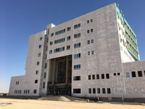 وأوضح رئيس جهاز مدينة قنا الجديدة، أن المبنى الرئيسي للمستشفى يتكون من 8 طوابق (بدروم وأرضي و 6 أدوار متكررة)، والمستشفى سيستوعب 175 سريراً وتبلغ مساحة المبنى 30100 متر مربع، ونسبة إنجاز المشروع 80? ، مؤكداً زيادة معدلات التنفيذ.