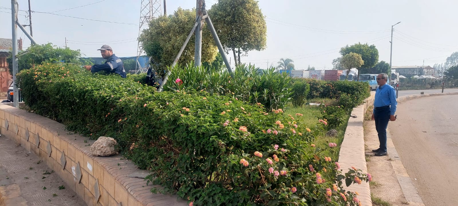 تابع علاء يوسف، رئيس مركز ومدينة دسوق، زراعة الأشجار، وتقليم وتهذيب الأشجار بالحدائق العامة والميادين وجميع المداخل والمخارج والأحواض الزراعية و والنخيل، ومتابعة أعمال تجديد زراعات الأحواض الزراعية، ومتابعة أعمال تنظيف الاحواض والحشائش، وأعمال الري وقص النجيل،بالمساحات الخضراء.