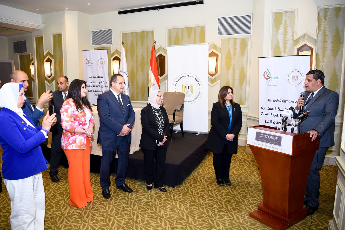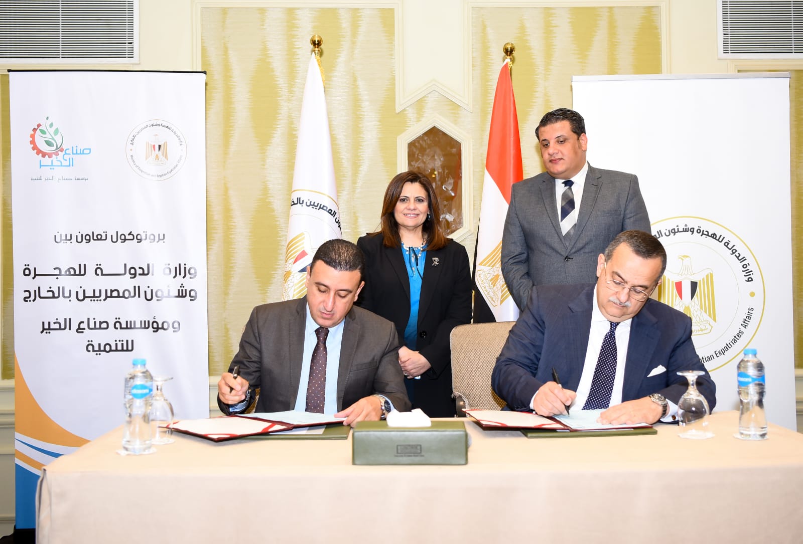 وقع البروتوكول السفير عمرو عباس مساعد وزيرة الهجرة لشئون الجاليات، عن وزارة الهجرة، وهاني عبد الفتاح المدير التنفيذي لمؤسسة صناع الخير للتنمية عن المؤسسةيهدف بروتوكول التعاون مع مؤسسة صناع الخير، للارتقاء بمستوى الخدمات المقدمة للمواطنين خاصة في المحافظات التي تنتشر بها ظاهرة الهجرة غير الشرعية، وبما تشمله من توفير رعاية صحية، وتقديم خدمات طبية، وعمليات جراحية، وفقاً للمتطلبات الخاصة بكل محافظة خاصة في القرى الأكثر فقراً.