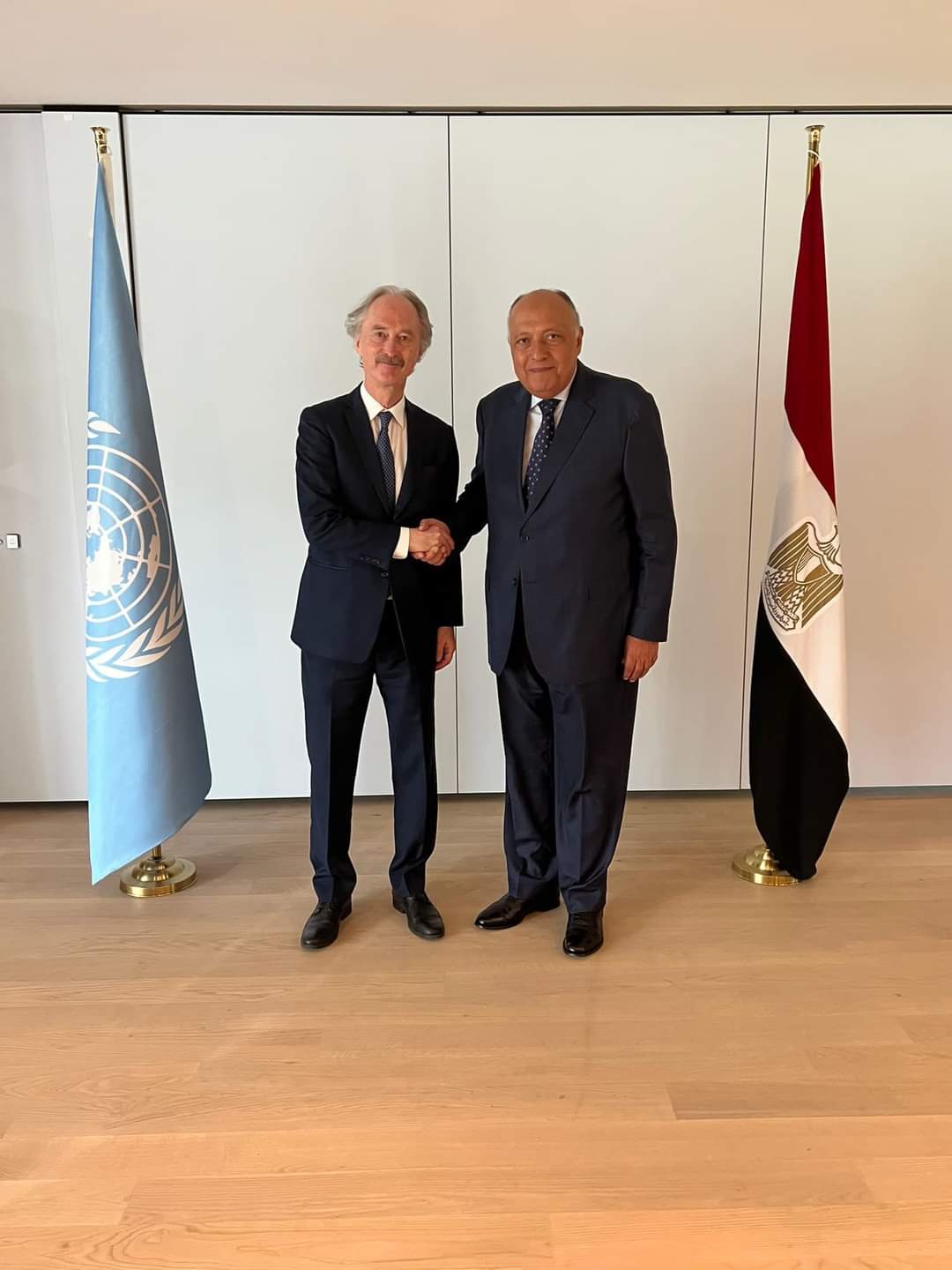 وأعرب المبعوث الخاص إلى سوريا عن حرصه على العمل مع اللجنة الوزارية العربية لمتابعة الدفع بالحل وفقاً لمقاربة خطوة مقابل خطوة، مجدداً تقديره للتواصل المستمر بين مصر والأمم المتحدة من أجل العمل الجاد على حلحلة الأزمة السورية.
