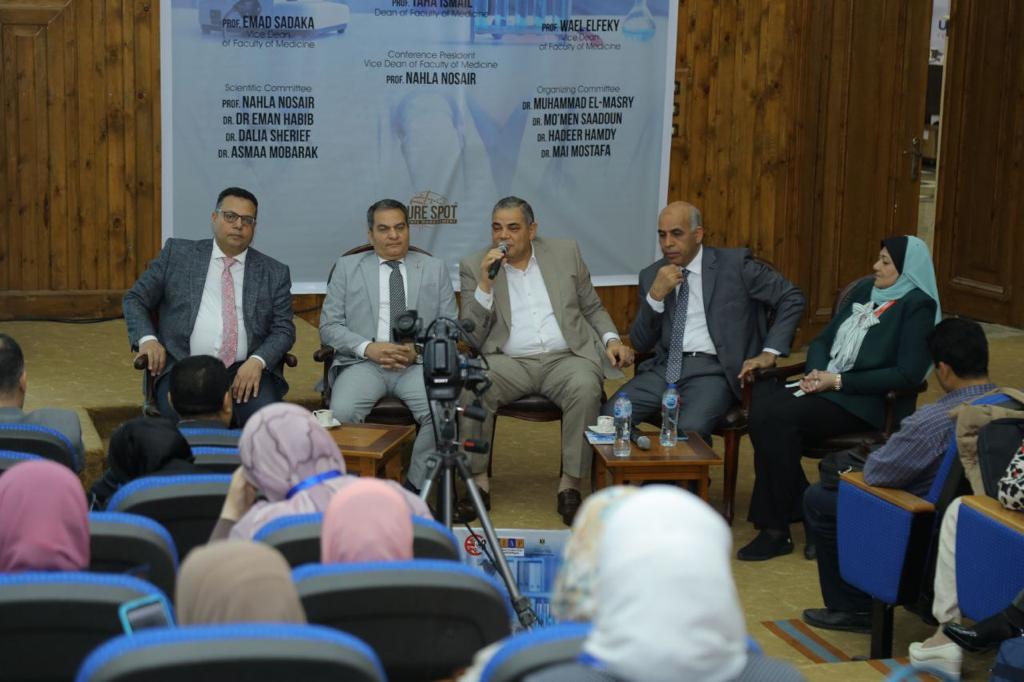 جاء ذلك خلال افتتاحه لوقائع المؤتمر السنوي الثاني لقسم الباثولوجيا الإكلينيكية بعنوان “التكامل بين الطب المعملي والممارسات الإكلينيكية”، بحضور الدكتور محمد عبد العال نائب رئيس الجامعة لشئون التعليم والطلاب، والدكتور إسماعيل القن نائب رئيس الجامعة للدراسات العليا والبحوث، والدكتور طه اسماعيل عميد كلية الطب، والدكتور نهله نصير وكلية الكلية للدراسات العليا والبحوث ورئيس المؤتمر، ووكلاء كلية الطب، ولفيف من أعضاء هيئة التدريس بقسم الباثولوجيا الإكلينيكية والأقسام الطبية الأخرى وبمشاركة نخبة من الأساتذة من مختلف الجامعات المصرية.