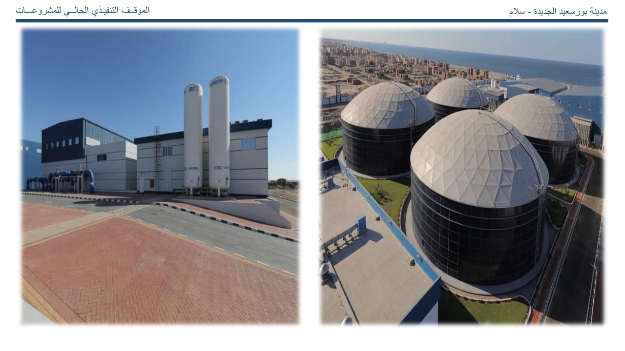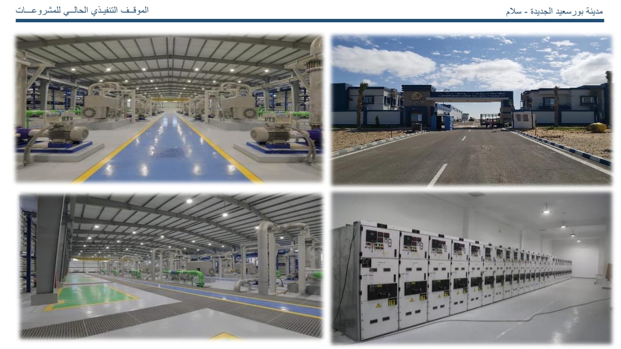 وأوضح المهندس مجدي حسين، أنه تم الانتهاء من تنفيذ مشروع محطة تحلية مياه البحر بطاقة 150 ألف م3/يوم، وجارٍ تنفيذ الخط الناقل للمياه من محطة التحلية حتى المنطقة الصناعية حيث بلغت نسبة التنفيذ 90%، والانتهاء من مشروع محطة محولات شرق بورسعيد جهد 22/66 ك.ف شامل خط الربط، وجارٍ تنفيذ محطة معالجة مياه الصرف الصحى المدمجة compact unit، وجارٍ تنفيذ مشروعات المرافق للإسكان الاجتماعى (طرق – صرف – مياه – كهرباء ) بنسبة تنفيذ 85%، والانتهاء من تنفيذ مشروع الأعمال المدنية لشبكة تليفونات مشروع الإسكان الاجتماعي.
