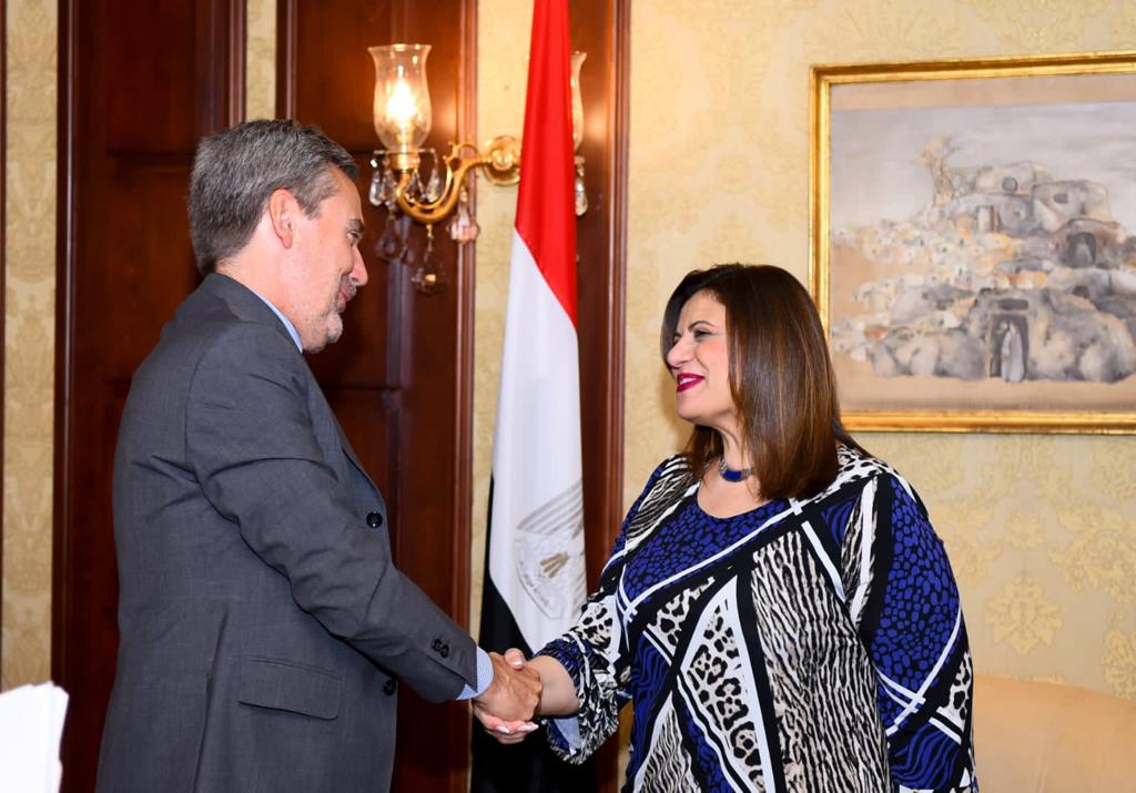 استقبلت سها جندى وزيرة الهجرة ميكيلي كواروني، سفير إيطاليا لدى مصر، والوفد المرافق له.