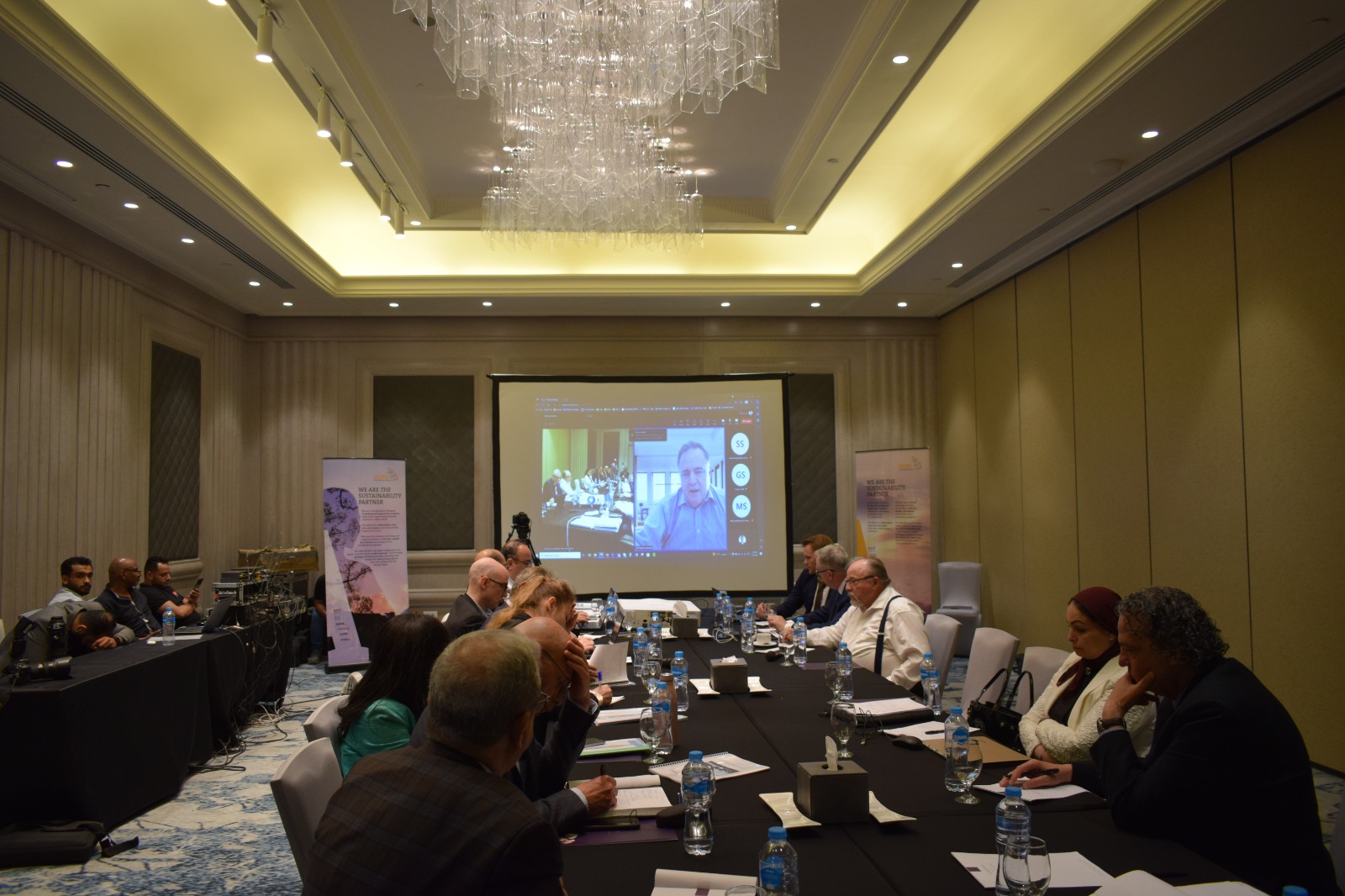 وقدم الدكتور محمد حسن مصطفى، الرئيس التنفيذي لجهاز تنظيم مياه الشرب والصرف الصحي وحماية المستهلك، عرضاً حول تطوير الخطة الاستراتيجية لعمل الجهاز، وتطوير إجراءات التشغيل القياسية، وتطوير نموذج التعريفة.