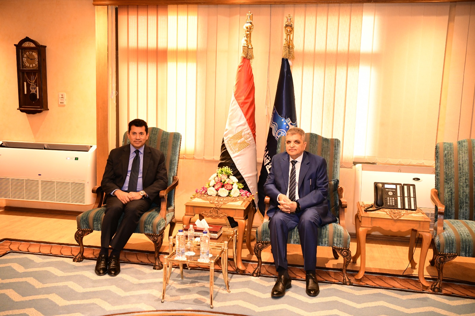 استقبل الفريق أسامة ربيع، رئيس هيئة قناة السويس، الدكتور أشرف صبحى وزير الشباب والرياضة، يرافقه الوفود الشبابية المشاركة بالدفعة الرابعة من منحة ناصر للقيادة الدولية، بمركز المحاكاة والتدريب البحرى التابع لهيئة القناة بمدينة الإسماعيلية، فى إطار التعاون المثمر بين هيئة قناة السويس ووزارة الشباب والرياضة، والتى تهدف إلى التعرف على مستجدات المشروعات التنموية بمنطقة قناة السويس.