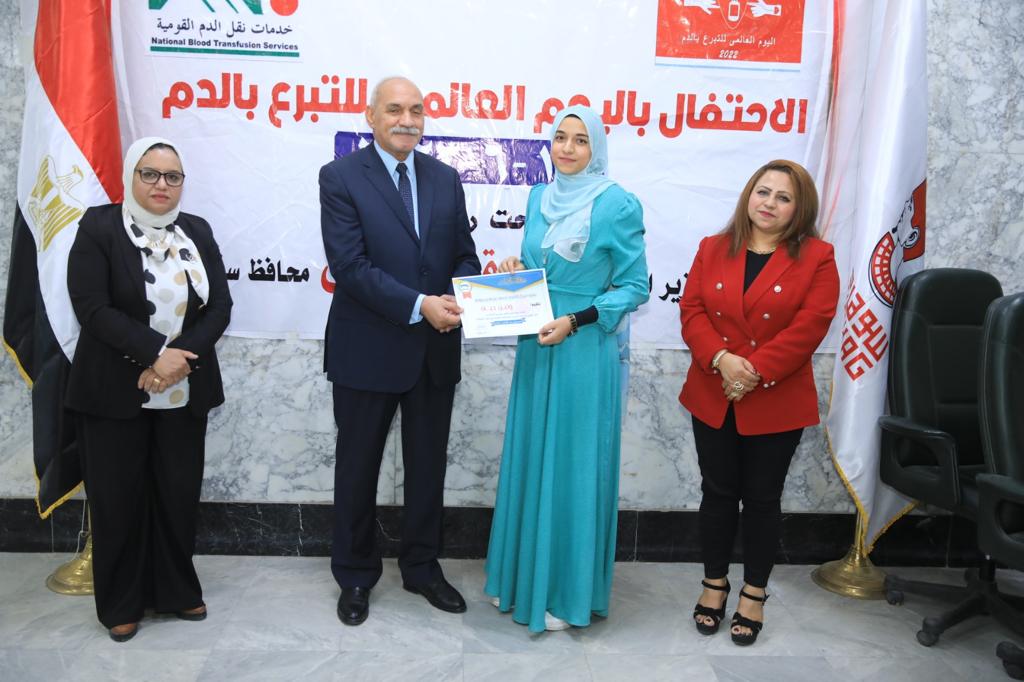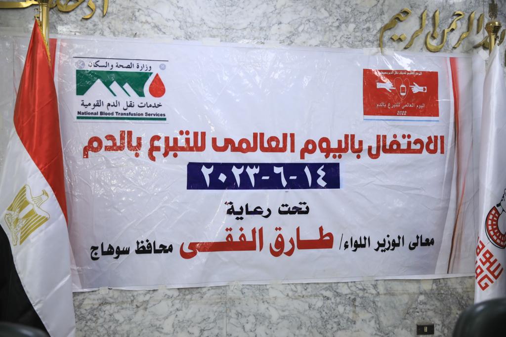 نظم المركز الإقليمي لنقل الدم بمحافظة سوهاج، اليوم، احتفالية بمناسبة اليوم العالمي للتبرع بالدم والذي يوافق يوم 14 يونيو من كل عام، وذلك بقاعة المؤتمرات الكبرى بديوان عام المحافظة، بحضور اللواء علاء عبد الجابر السكرتير العام المساعد للمحافظة، والدكتورة كريمة حامد وكيل مديرية الصحة، والدكتورة مريم ظريف مدير المركز الإقليمي لنقل الدم، وعدد من العاملين بالمركز، والمتبرعين .