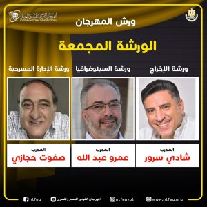 5 ورش في التمثيل والإخراج والإلقاء والسينوغرافيا والإدارة المسرحية بمهرجان المسرح المصري