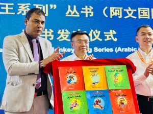 وأضاف أن دار الحكمة احتفلت في بكين بإطلاق النسخة العربية للعمل الصيني الأسطوري الخالد رحلة إلى الغرب والتي تتكون من ٣٣ جزءً، يقع كل جزء في٨٠ صفحة، وتتضمن رسوما لأشهر ٣٠ رسام صيني، وهي محررة خصيصا لليافعين، وانه قام بترجمة العمل الذي استغرق عامين، و يعد واحدا من أهم الأعمال الكلاسيكية في العالم وأكثرها انتشارا.