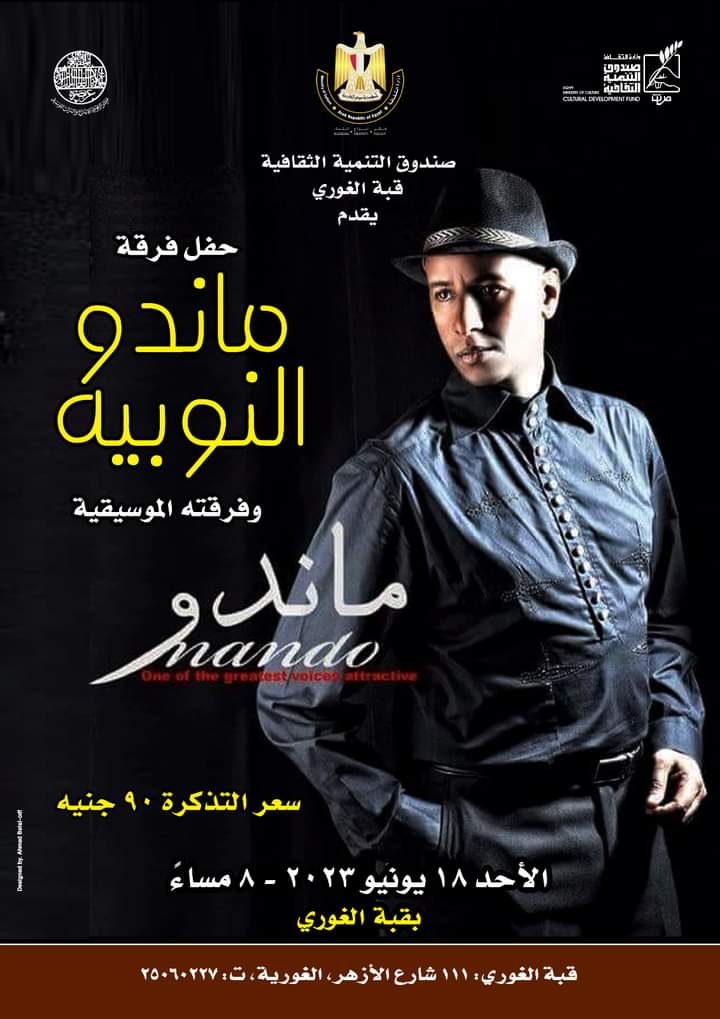 “نوبيات ماندو” في قبة الغوري و “أغاني الرواد” بقصر الأمير بشتاك.. الليلة