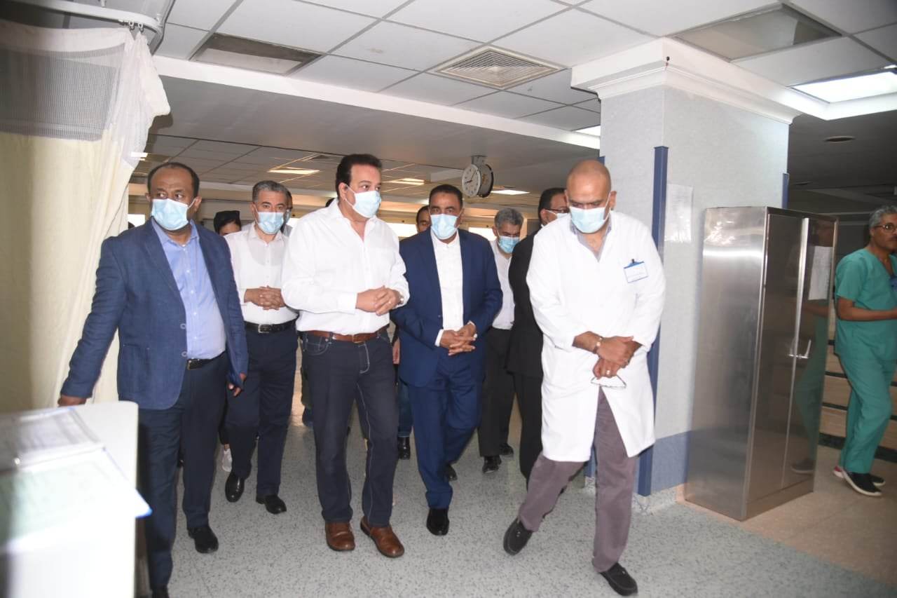 وتفقد الوزير خلال جولته بالمستشفى عدد من الأقسام العلاجية كالعناية والحضانات والقلب، والغسيل الكلوي بعدد ٢٢ سرير ،والأسنان والأشعة المقطعية وغيرها مع الاطمئنان على حالة الصحية لعدد من المرضى بالمستشفى.