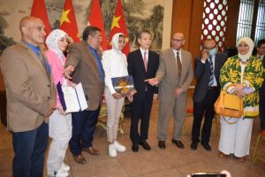 اقمت بالسفارة الصينية احتفال خاص بتوزيع جوائز سفراء الثقافة الصغار وسلم دروع الجائزة السفير الصيني لدى مصر لياو لي تشيانغ ، لشابتين مصريتين، مهنئًا إياهما بفوزهما بالجوائز،التى تمنح من مؤسسة سونغ تشينغ لينغ الصينية عام 2022 تحت عنوان “الفن الصيني المفضل”.