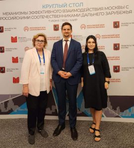نظم البيت الروسي بالقاهرة مؤخرا مائدة مستديرة بعنوان “اليات التفاعل بين موسكو والمواطنين الروس من المقيمين بالخارج” وشارك من القاهرة اعضاء المجلس التنسيقي للمغتربين الروس في مصر، ومن موسكو شارك نيقولاي ديليف رئيس قسم المشاريع الاجتماعية بحكومة موسكو، ودريديز يوجين نائب رئيس قسم الاقتصاد الخارجي والعلاقات الدولية، وفالانتين مكاروف السكرتير الثاني بالسفارة الروسية بالقاهرة، ومراد جاتين مدير المراكز الثقافية الروسية في مصر.