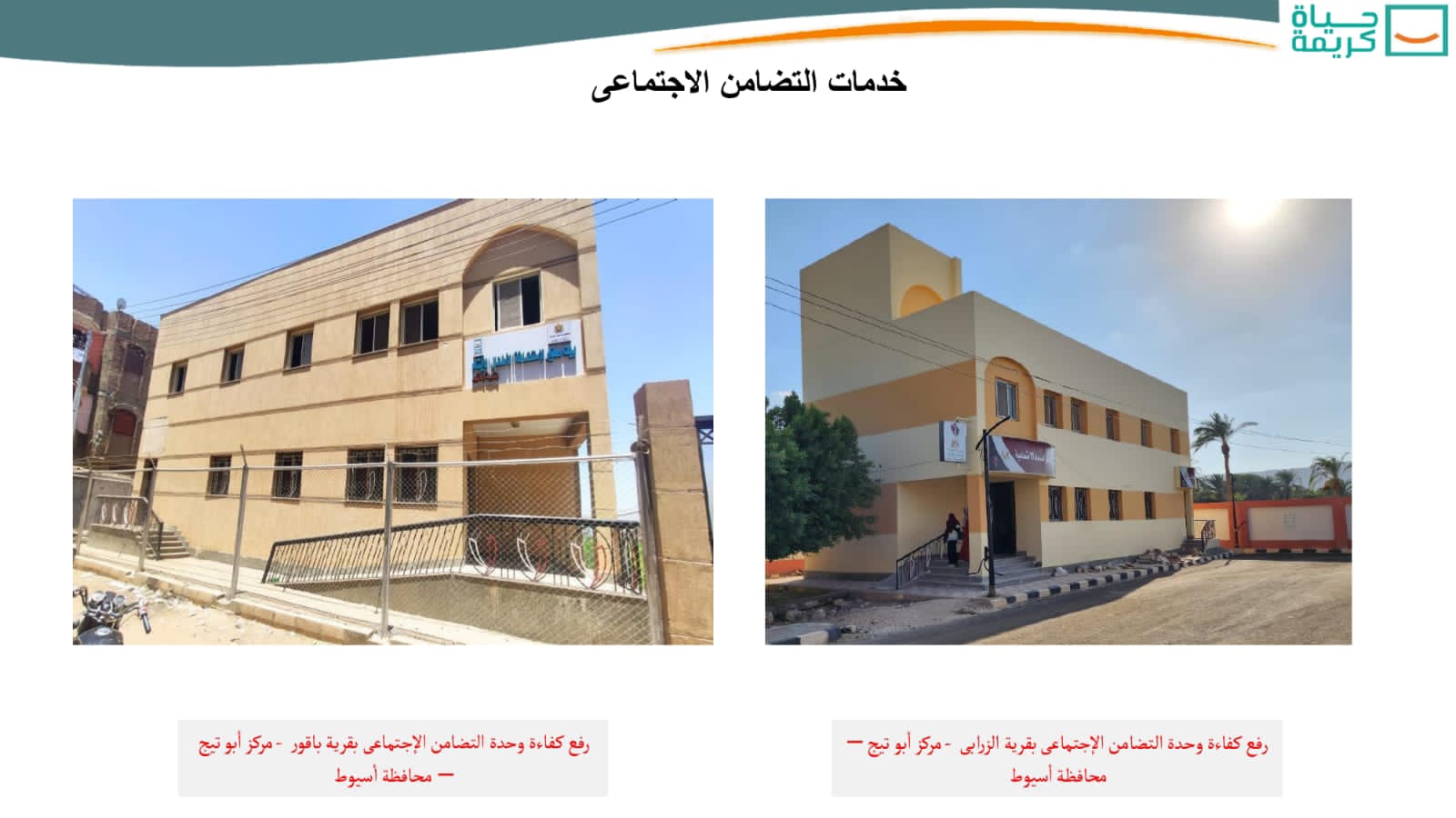 وذكر رئيس الجهاز المركزى للتعمير، أنه جار الانتهاء من تنفيذ 16 عمارة، من إجمالى 20 عمارة سكنية “سكن كريم”، بجانب أعمال إنشاء ورفع كفاءة شبكة الطرق داخل القرى، وبين القرى وبعضها، لتسهيل حركة المواطنين، وسهولة الوصول للخدمات، والمساهمة في تنمية القرى، ويتم بدء العمل بها بعد الانتهاء من تنفيذ شبكات المرافق بهذه الطرق، بالإضافة إلى انتهاء الأعمال بـ22 مشروعاً من إجمالى 36 مشروعاً لإنشاء ورفع كفاءة (وحدات اجتماعية – مراكز لتنمية الأسرة – مركز تأهيل اجتماعى).