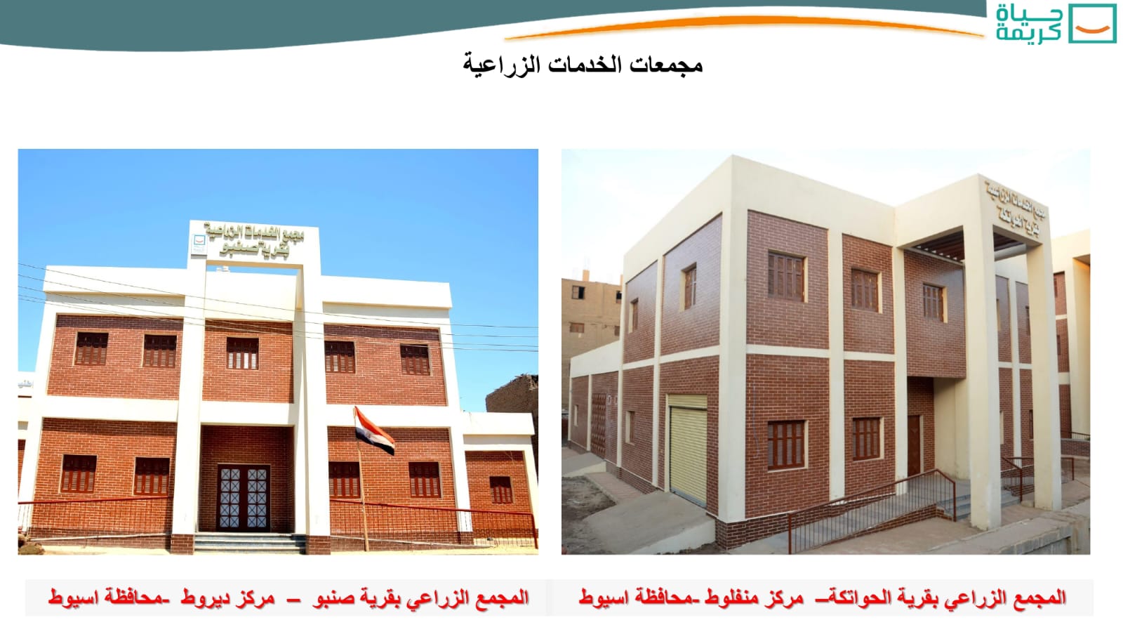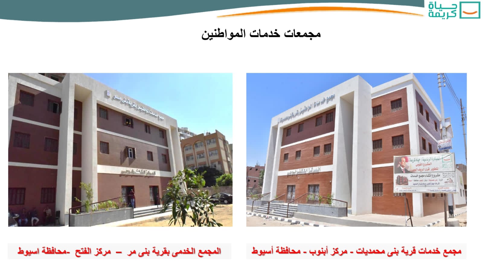 وأشار وزير الإسكان، إلى أن الوزارة تتولى تنفيذ المشروعات المستهدفة بـ25 مركزاً فى 10 محافظات، وتضم 741 قرية وتوابعها، وذلك ضمن المرحلة الأولى من المبادرة الرئاسية “حياة كريمة” لتطوير الريف المصرى، وتشمل المشروعات المُكلف بتنفيذها الجهاز المركزى للتعمير التابع للوزارة، ما يلى: إنشاء مجمعات خدمات المواطنين، ومجمعات خدمات زراعية، وإنشاء ورفع كفاءة وتطوير مراكز الشباب، والكبارى على المجارى المائية، والمنشآت الصحية، ونقاط الإسعاف، ومنشآت خدمات التضامن الاجتماعى، ومشروعات الكهرباء والإنارة العامة، والطرق، بالإضافة إلى مشروعات إنشاء عمارات “سكن كريم” للمواطنين.